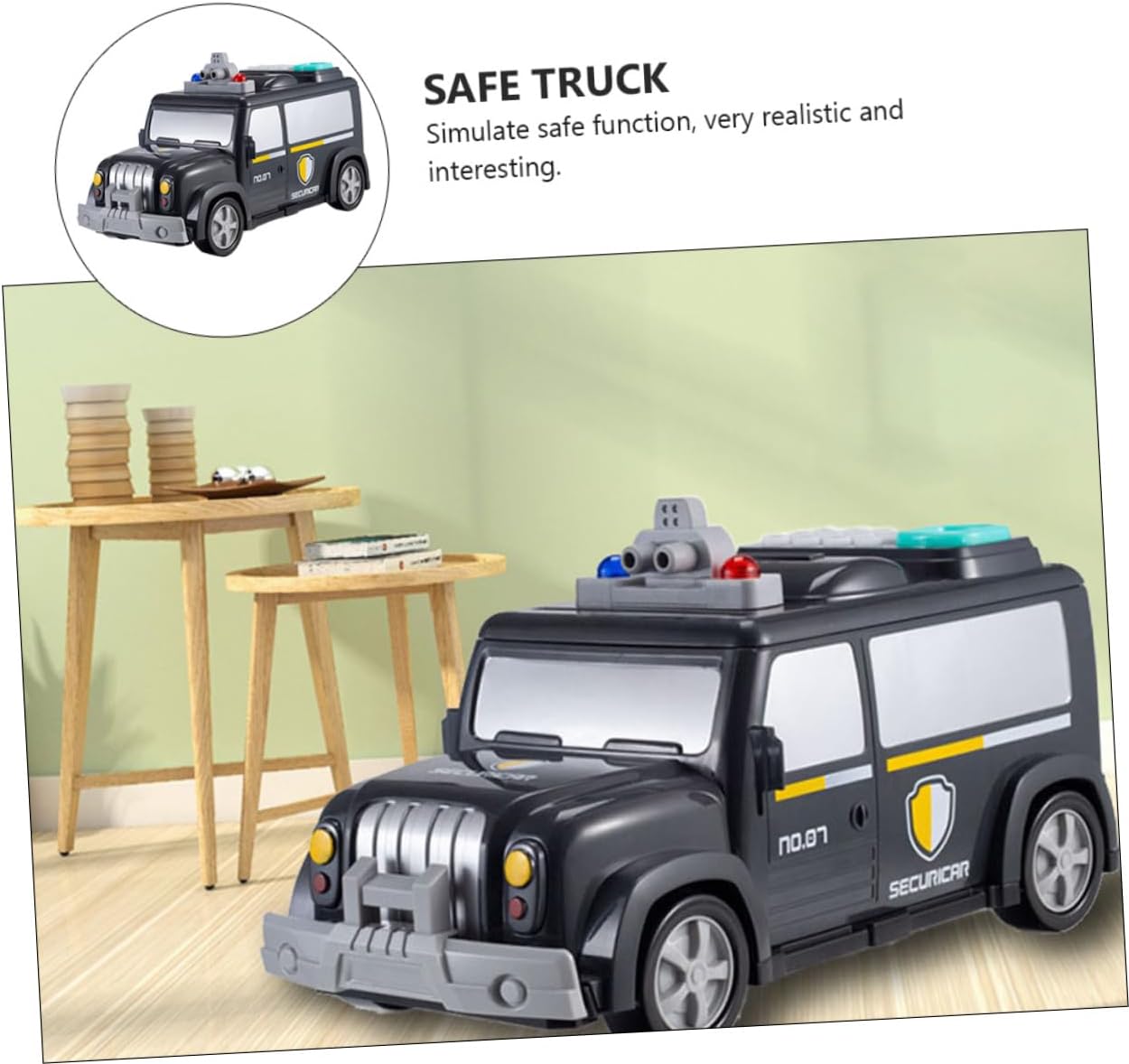 Package Include 1 x present box 1 x specification 1 x screwdriver 7 x paper 1 Features -Material: ABS and electronic components -Color: Black,White Saving Deposit Boxes -Size: About 27X14X13cm/10.61X5.5X5.11in Password Cash Truck - Put the scroll, it can be rolled into the machine automatically Moneybox. - Simulate safe function, very realistic and interesting Educational . - Supporting fingerprint touches, automatic cash scroll, password opening, voices switching Digital Piggy Bank. - The money storage box is made of material, , safe, solid, long performance life Car Piggy Bank. - This money bank not only can store money but also can role like a car. for Securicar .Goods InformationDigital Piggy Bank Made of ABS and electronic components, the securicar are safe and for to play.Saving Deposit Boxes Fun and creative for your little one.Password Cash Truck It is great for developing hand-eye coordination, logical thinking and creativity