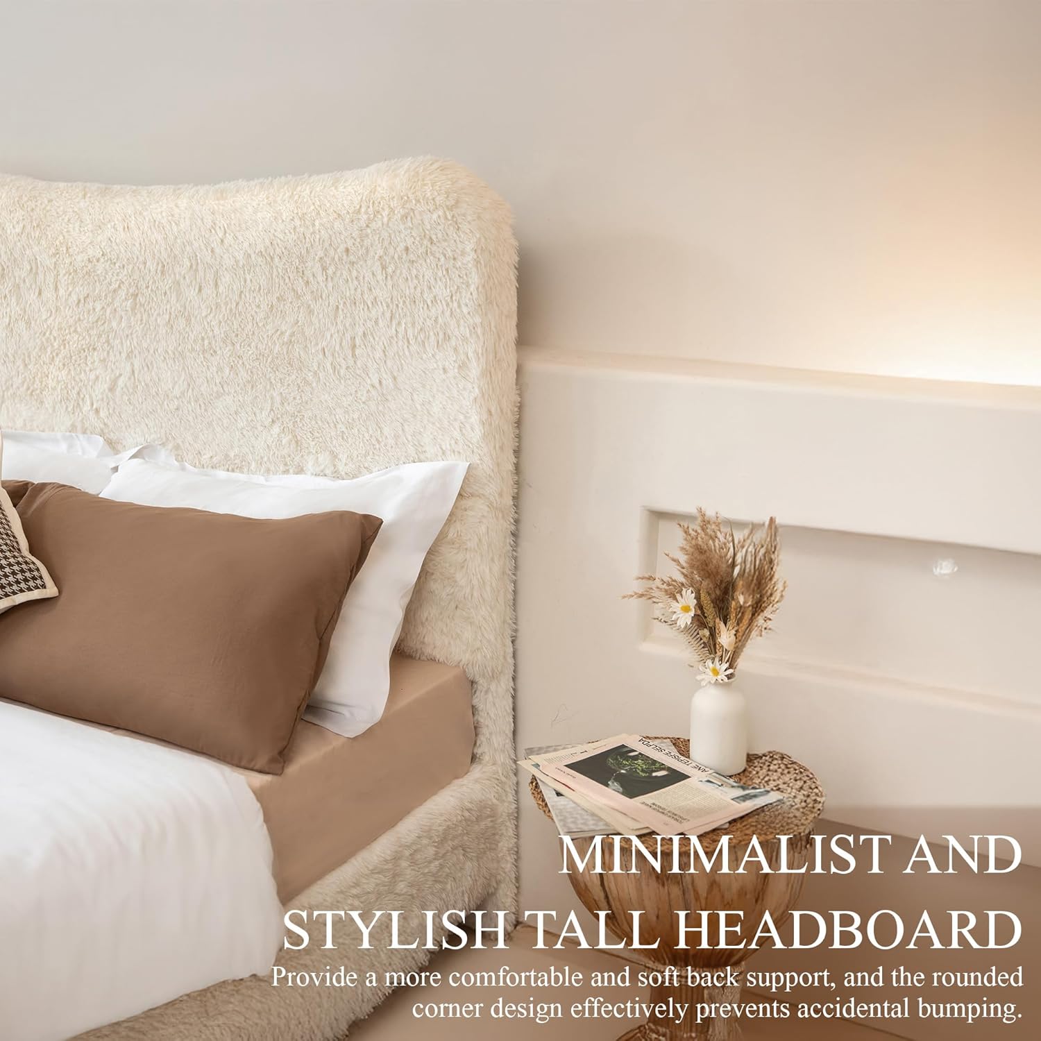 • Fluffy Texture: Crafted from premium faux fur fabric, brafab cloud bed frame offers a velvety-smooth feel that's even more plush and soft than ordinary Boucle fabric, delivering ultimate comfort for both sight and touch. It will become your perfect cozy retreat for unwinding and enjoying a good read during chilly winter months.