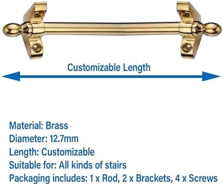 Introducing our premium Brass Stair Carpet Rod, the perfect solution for enhancing both the safety and aesthetics of your staircase. Designed for versatility, this product fits seamlessly with wood and porcelain plates, making it an ideal addition to various settings such as your living room, exhibit centers, or meeting rooms. Crafted from high-quality brass, our stair carpet rod not only provides a classic look but also ensures durability for years to come. With a diameter of 1.27cm (0.5 inch) and a customizable length ranging from 51 to 127 cm (20 to 50 inches), it’s easy to find the perfect fit for your stair treads. Before purchasing, we recommend measuring your stair tread width to ensure an optimal match. One of the standout features of our carpet rod is its ease of installation. The package includes screws, making it simple to secure your carpet in place, preventing edges from bending or fraying. This not only preserves the integrity of your carpet but also increases traction, significantly reducing slip and fall accidents for your family and guests. Whether you're using it indoors or outdoors, our stair carpet rod is designed to withstand the elements without deformation or color fading. Its beautiful craftsmanship adds a touch of elegance to your space, making it not just a functional item, but also a stylish accessory for your home or office. Please note that lighting conditions may affect the appearance of the product, and actual colors may vary slightly from images. Additionally, manual measurements may result in a slight error of 1-2 cm. Elevate your staircase safety and style today with our Brass Stair Carpet Rod!