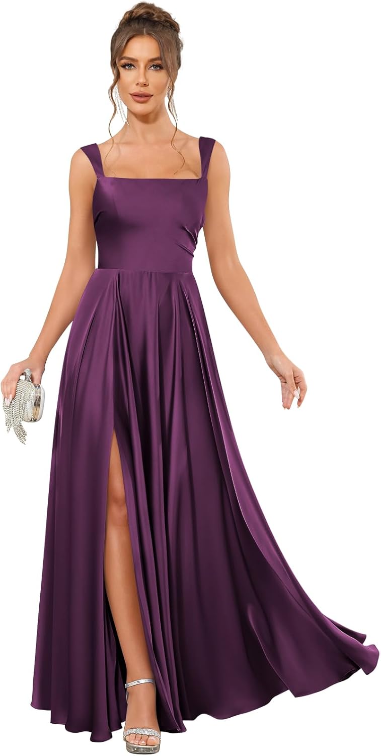 Satin Bridesmaid Dresses Square Neck Spaghetti Straps A-line Wrap Slit Long Prom Dress Formal Party Gowns Due to manual measurement, there may be some slight size differences. Due to differences in display or lighting, there may be slight color differences in the images. Please refer to the size chart we offered and check the size carefully before you purchase it, Thank you! If you would like to customize, please contact us via email once you placed the order and send us your exact size, Thank you!