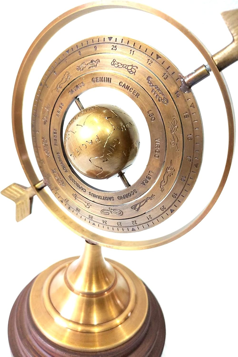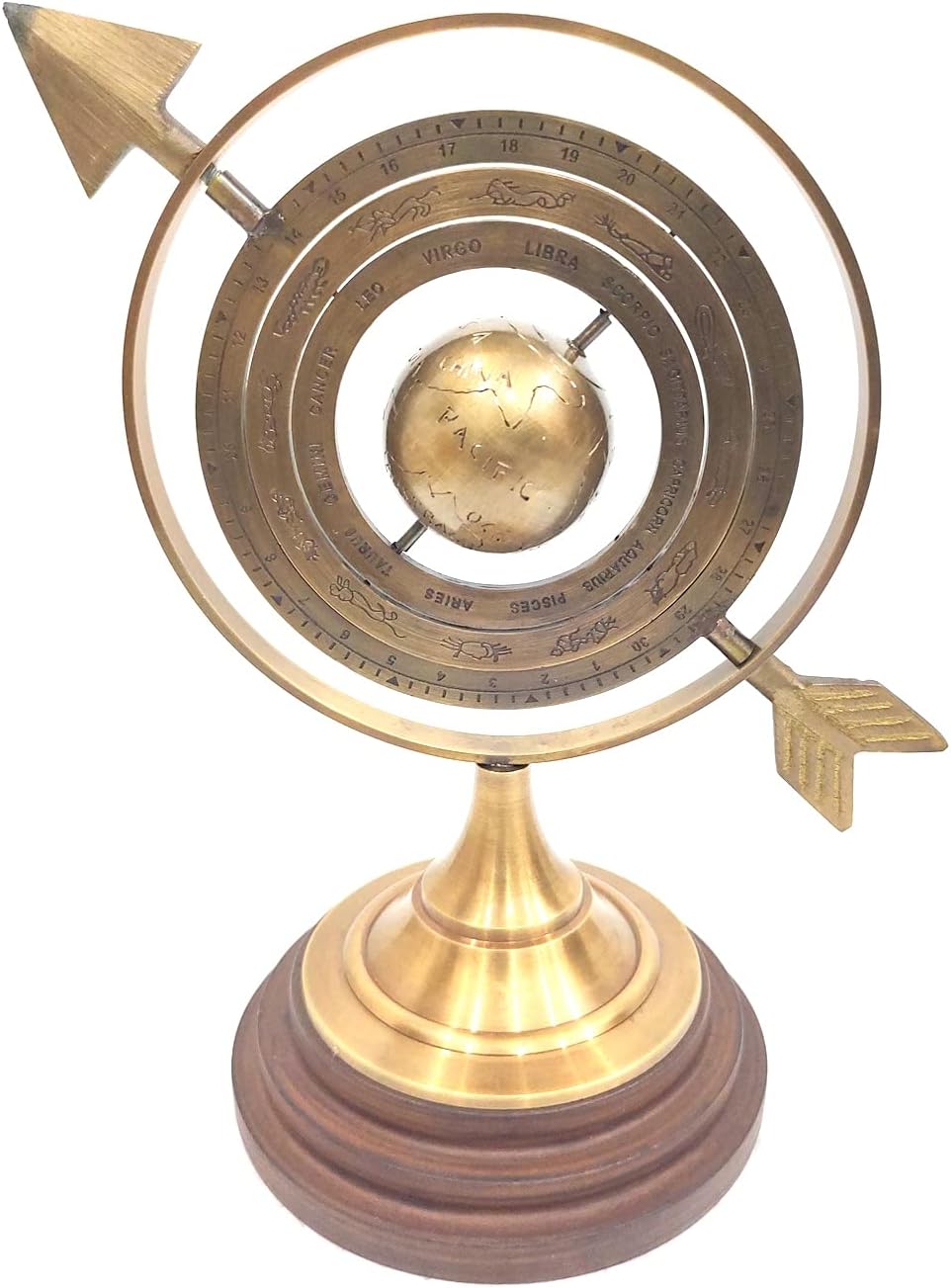 Brown Antique Size 12 Inch lobe Armillary Globe Showpiece, Brass Armillary With Wooden Base Sphere Decor, Nautical Brass Decor 100 % Pure Metal Brass & Wooden