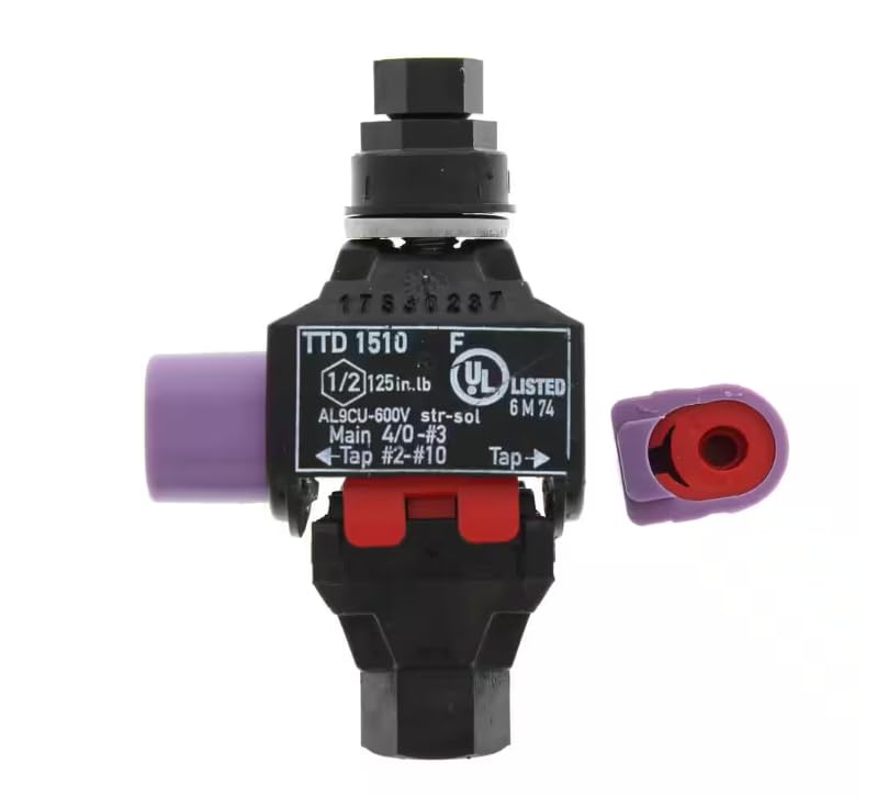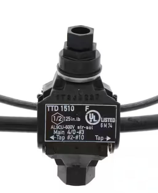BTC4/0-10 B-TAP Insulated Pierce Tap Connector, Main 4/0-3, Tap 2-10 (1 unit) Safe, dependable, and easy. No other connector offers as much as the B-TAP Insulation Piercing Connector. B-TAP connectors are great for a wide range of applications such as temporary circuits, emergency repairs, disconnect/reconnect, remodeling, maintenance and repair, street lighting, service entrance, risers in high-rise construction, commercial metering, transformers, secondary midspan tap, and much more. Self-insulating and weather-proof, B-TAP connectors are installed using only a standard box or socket wrench. A breakaway torque nut guarantees a perfect connection every time. The grease-filled rubber end caps provide superior water and corrosion resistance, while the insulation-piercing design eliminates downtime and power interruptions. That translates into a 60% installed savings compared to split bolts. Highlights Breakaway torque nut snaps off when UL torque requirements are met Second nut remains for easy connector removal Self-insulated housing eliminates the need for tape Safely installs on energized systems Grease-filled end cap seals end of conductor for superior weather protection Grease-filled boots protect copper teeth from corrosion and prevent arcing Hardened copper teeth pierce insulation and bite into conductors Rated to 194 F / 90C and 600V Can be used on Cu-Cu, Al-Al, Cu-Al, and Al-Cu when used in non-tension, insulated applications Conductor Range: Run 4/0-3 AWG, Tap 2-10 AWG