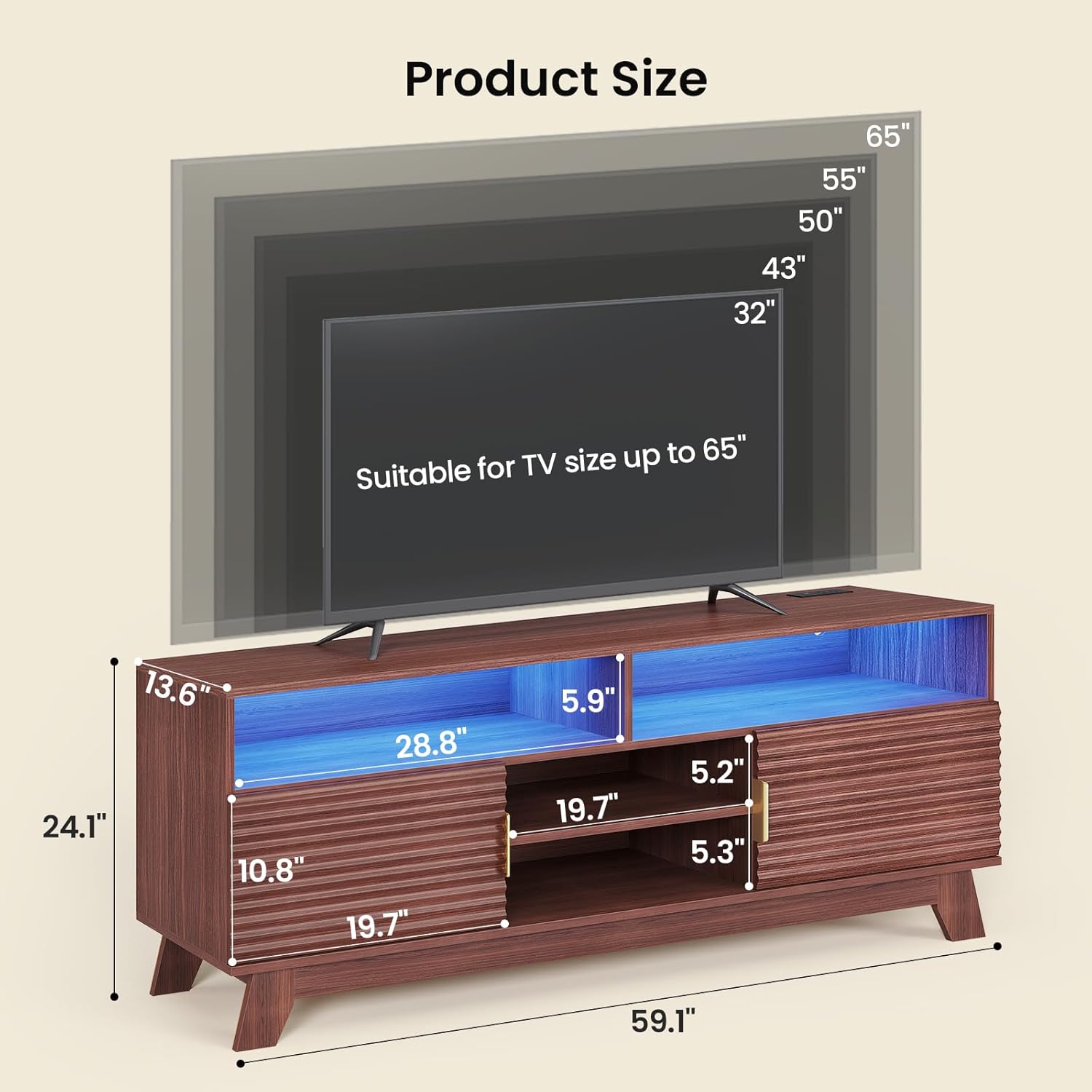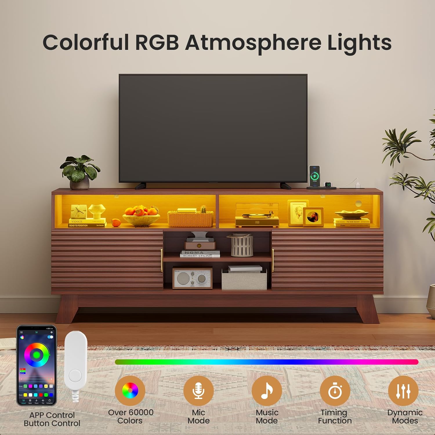 | Included Components | TV Stand, RGB LED Lights, Power Strip, Hardware Kit, Assembly Manual |