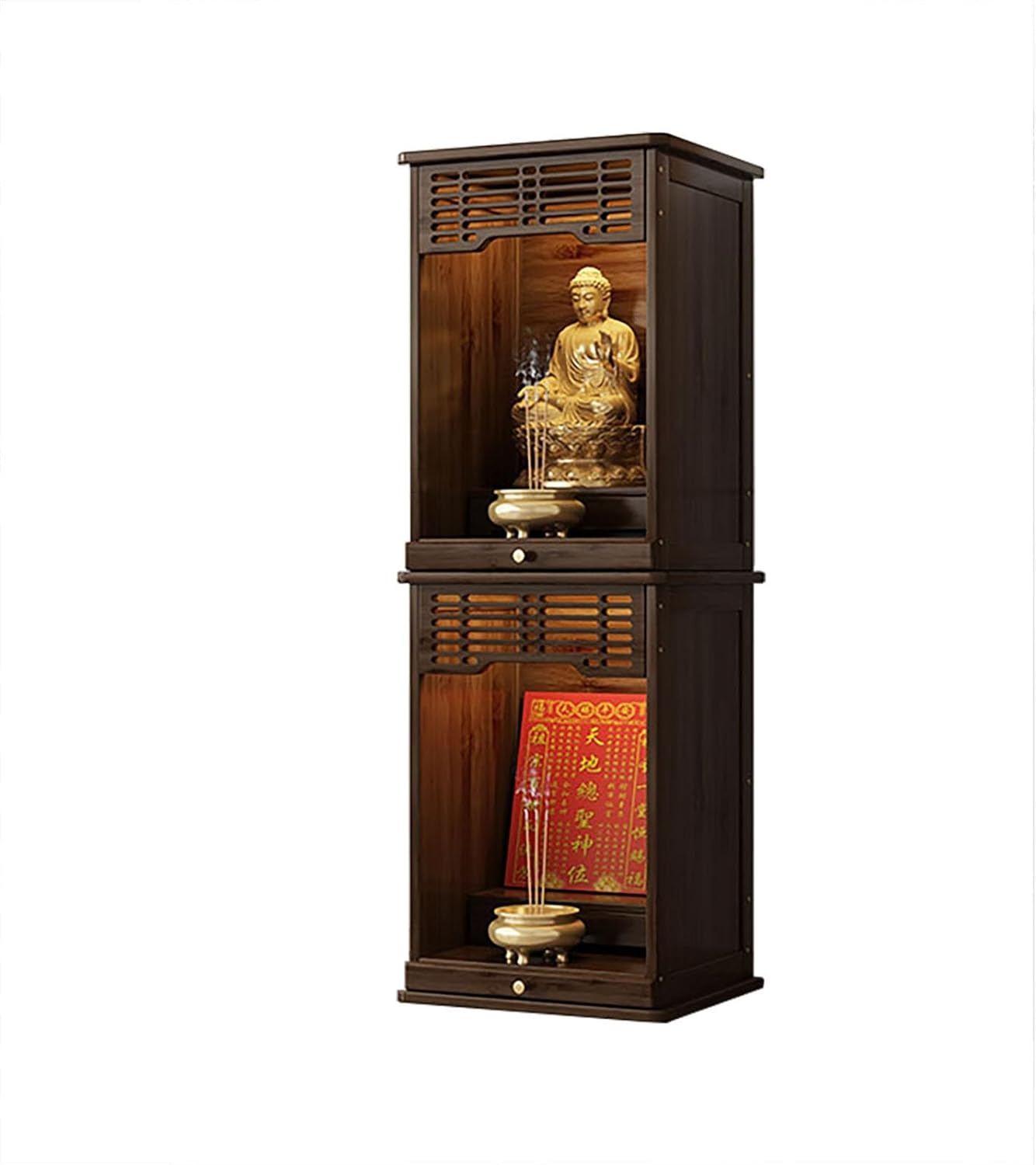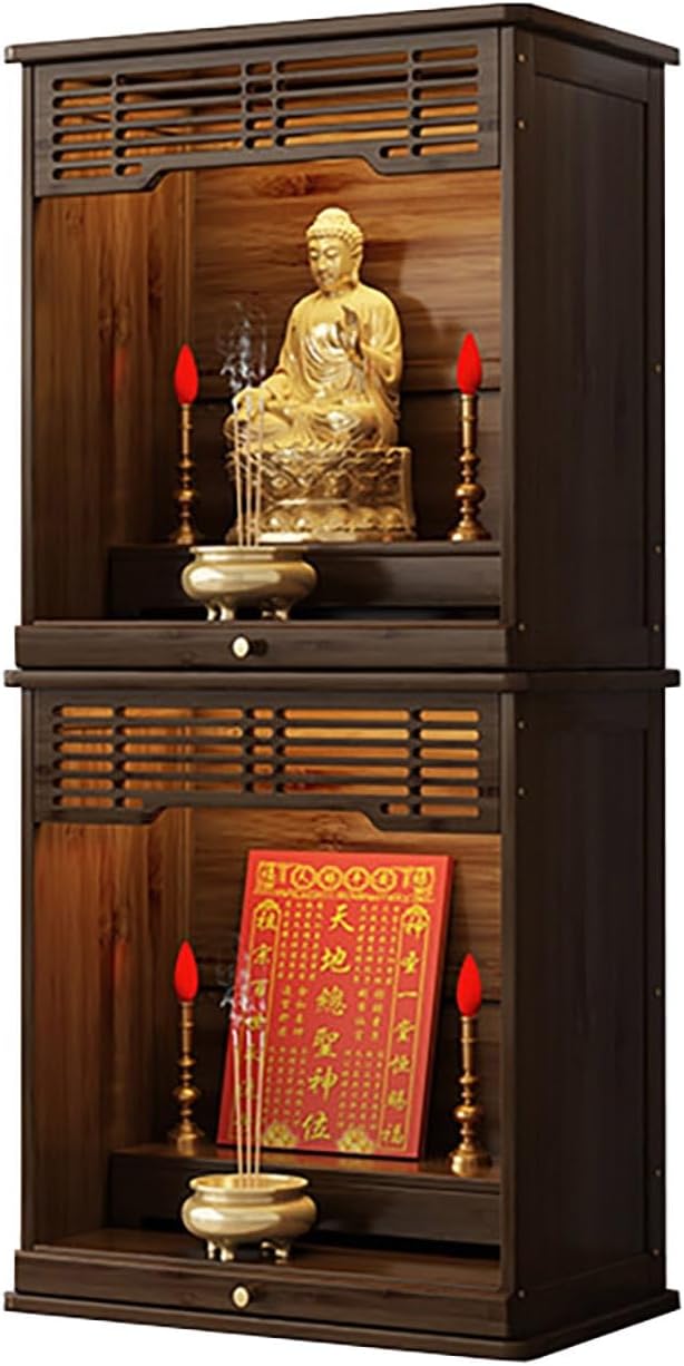 Layered Display Shelf Personal Shrine Altar Table Buddha Altar Shelf Buddhist NicheProduct DescriptionThe stable installation design features a solid back panel and a front door structure, ensuring every ornament and statue remains securely in place. This sturdy design eliminates the risk of accidental falls while maintaining a clean and organized wall appearance.Crafted with a layered altar design, the shelf symbolizes continual progress and ascension, perfectly representing Buddhist philosophy. The tiered structure includes a raised pedestal for Buddha statues, a wide incense burner area, and an extendable tray for offerings. Each tier provides ample space for candles, incense, or ritual objects, allowing you to create a personalized Buddha altar table that reflects your devotion and style.Built with premium thickened bamboo solid wood, the altar offers superior strength and load-bearing capacity. Its practical bamboo material ensures lasting stability and an earthy aesthetic that complements a serene spiritual atmosphere. The craftsmanship highlights smooth finishes, firm joints, and reliable structural integrity—perfect for long-term use as a personal shrine altar table.This practical pull-out altar design offers a space-saving yet functional approach to modern spiritual setups. When not in use, the extendable tray slides smoothly back into place, ensuring that your pathway remains unobstructed. Ideal for compact spaces, apartments, or offices, this layered display shelf provides both convenience and spiritual comfort without compromising on design elegance.product information:Name: Meditation Table Buddhist Altar Table Buddhist Altar Personal Prayer Shrine Desk for Living Rooms Shrines TemplesColors: Light Walnut , Walnut , Red , WhiteMaterial: solid woodInstallation: Assembly requiredUse: Suitable for ancestral halls, temples, worship, sacrifice, incense burning, divination, various rituals, suitable for formal and casual occasionsPackage Includes:1 * Chinese Cabinet Pedestal Offering TableNotes:Please confirm dimensions prior to purchase, as there may be a slight error of 0-3 cm due to manual measurement.Images are for illustrative purposes; additional items shown are not included.Colors may vary slightly due to monitor differences.