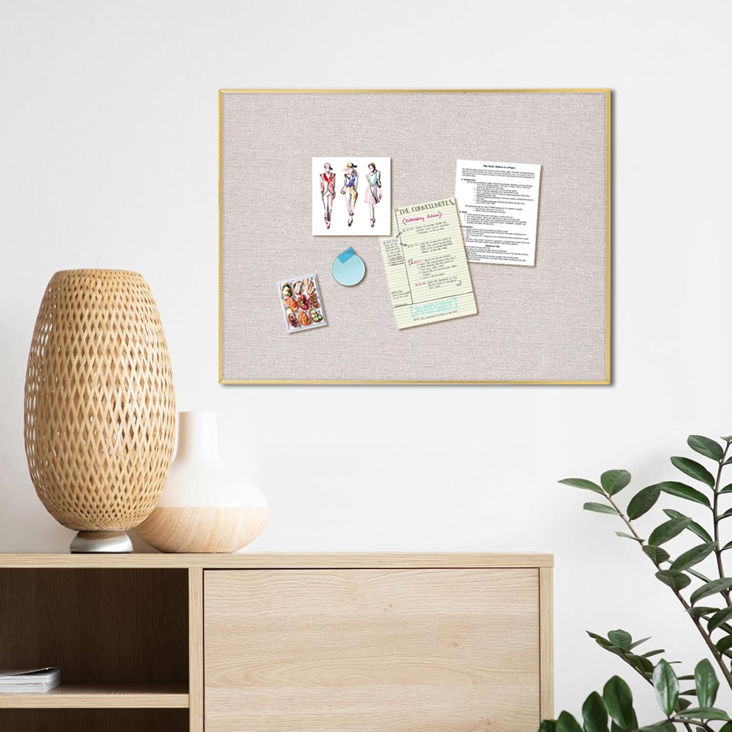 The golden frame bulletin board for walls combines smart organization with contemporary style - designed for multitasking homes and offices. Includes: 1x fabric bulletin board, 2x built-in sliding hooks, 5x transparent pushpins