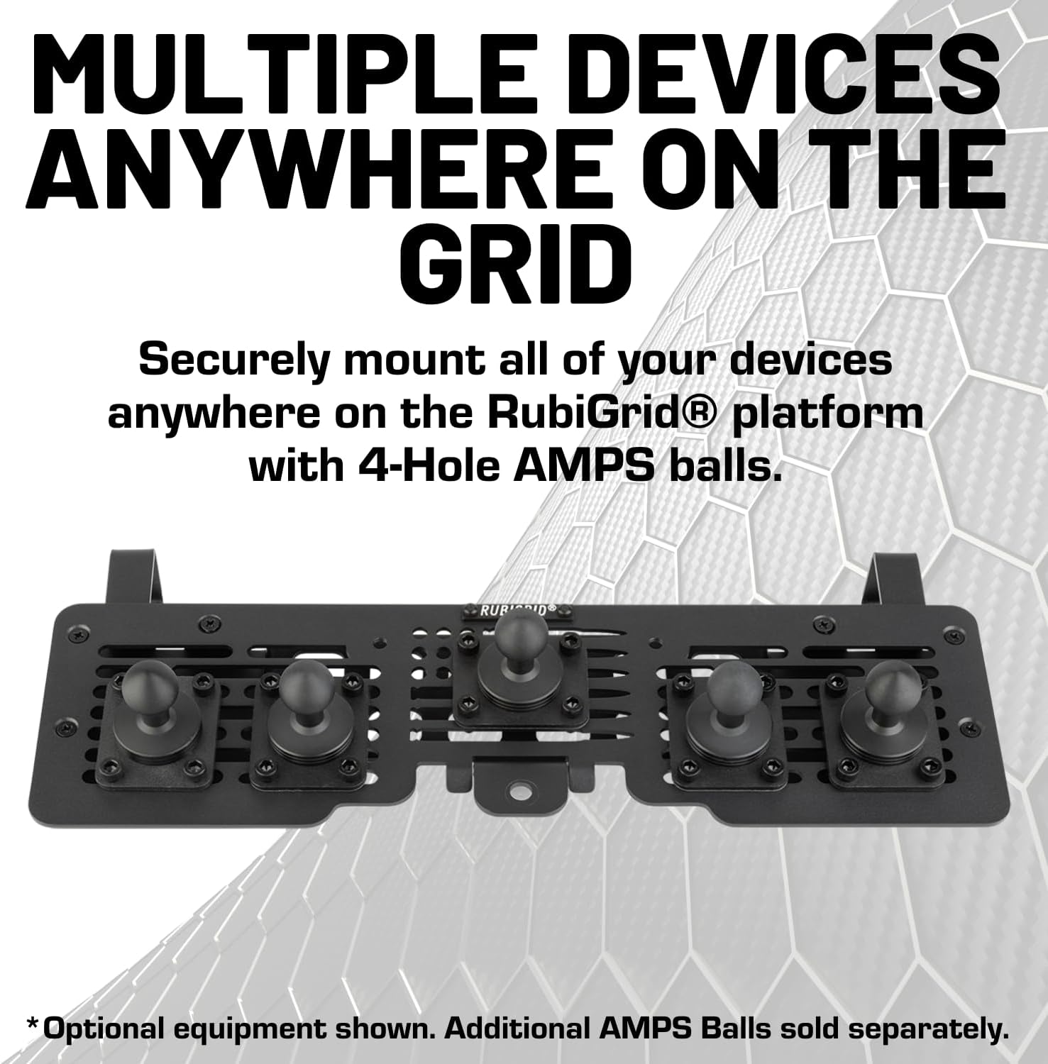 | BuiltIn Media | 1x 10cm Carbon Fiber + Kevlar Mounting Arm, 1x 4-Hole 20mm AMPS Ball, 1x RubiGrid Dash Mount, 1x Universal Phone Holder |