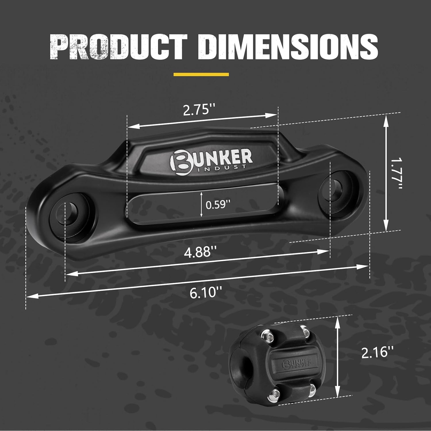 4-7/8’’ hawse fairlead is precision CNC machined from durable 6061-T6 aluminum with a black powder coated finish for UV and corrosion resistance. It has a large radius and round opening to reduce abrasion, fraying, and tangling of the winch rope, ensuring effective spooling and extending the life of synthetic ropes. The accompanying winch stopper is made of durable rubber. The synthetic winch rope features ultimate tensile strength, won't kink, curl or splinter, is extremely light, floats in water, and is easily handled and spliced. It has a synthetic protective jacket for ultimate abrasion resistance and UV protection, which increases the rope's breaking strength by 20% to bear up to 26000 lbs. The rope also has a heavy duty stainless steel tube thimble for superior eye protection and hook attachment (hook not included), and it remains workable below -20 degrees centigrade, especially suitable for winter use.