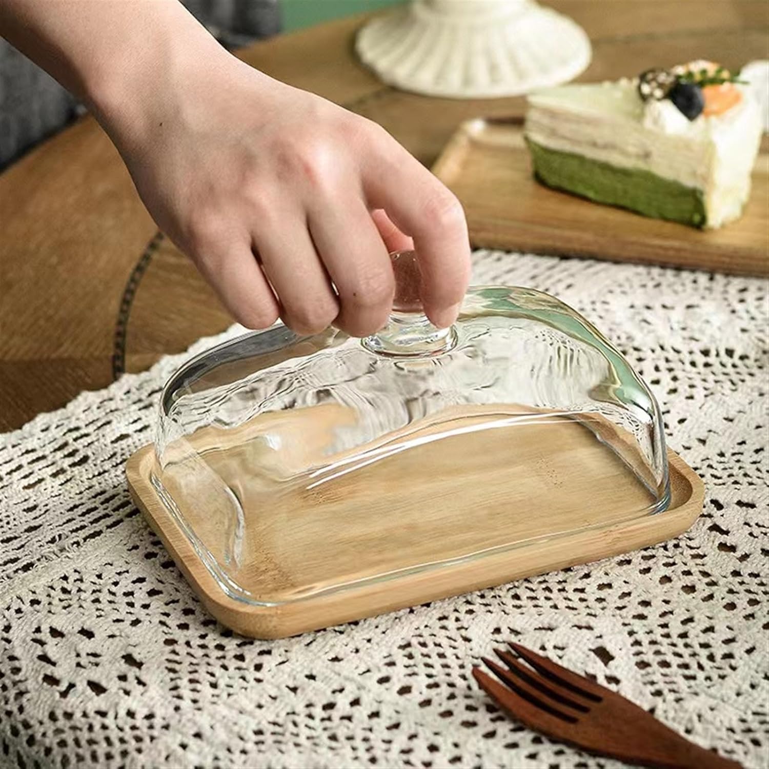 butter dish is advanced and bright, and it blends perfectly with other kitchen utensils. Visually increase the experience and enjoyment of food.Simple and practical butter container for home, restaurantProduct Name:Butter dishMaterial: wood+glassSize: 18*12*10cm/7.08*4.72*3.93inchPacking list: butter dish*1Notes:1.Please confirm the size and color before purchase.2.This product has no other items except the butter dish in the photo.3.Manual size measurement. There may be a slight difference, which is normal. Please refer to the actual size. Thank you very much.4.Due to different light and screen, the color of the product may be slightly different from the picture. Please understand.