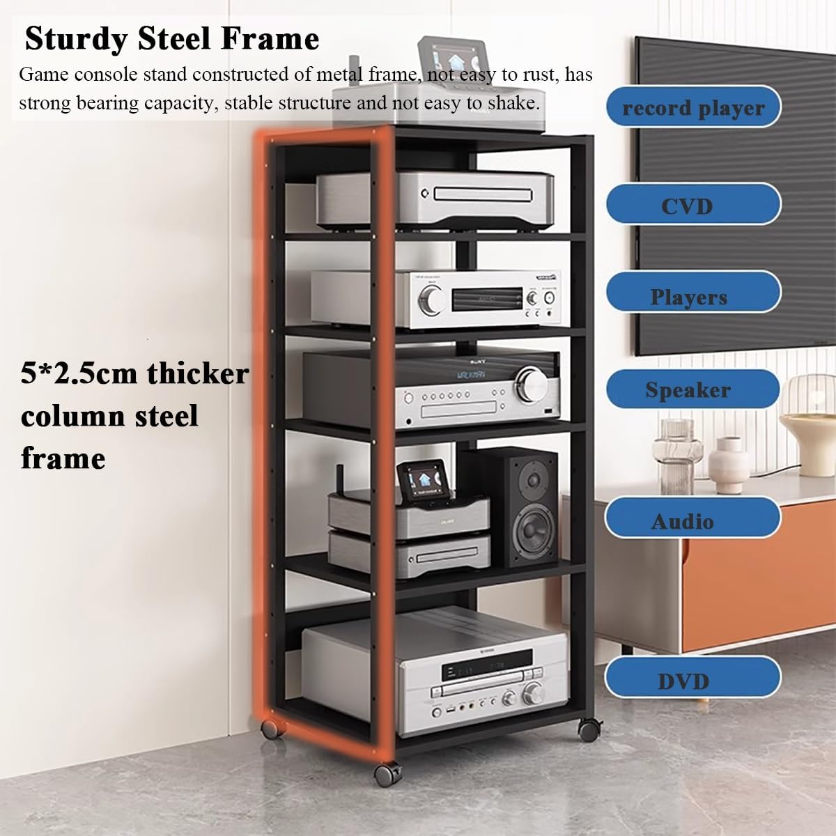 Discover Perfect Media Console - The multi-tiered shelf is a standout fixture that enhances your home entertainment system. Crafted from industrial-grade metal, the shelves provide stable and stylish storage for your various gadgets.✔ SpecificationsProduct Name: Storage RackStyle: Modern SimplisticMaterial: Board + Steel PipeFurniture Structure: Frame StructureTier: 5 tier/6 tier/7 tierEasy Assembly: YesApplicable Scene: Home, Office, Shop, Theater, etc.✔ Feature:- Large load-bearing for long time using and also easy to clean and maintain.- Open construction also means that your electronics aren't going to overheat.- Multi-functional storage solution in your home theater, - Side media shelf in your office, home living room, bedroom.- Ideal for tight spaces, stereo storage, sofa end table, or TV stand.- Offer you enough space to place your stereo equipment.- Plenty of room on the shelves for the player, amp and CD player. - It is strong enough to hold most audio/video components.- Provides excellent functionality and a stylish overall look for your home.✔ Package Includes:- 1 x Audio Rack ✔ Note:● Only the storage rack is included in the purchase. Other products shown in the photos are props.● Due to monitor and light differences, there might be a slight variation in the actual color of the product.● Please allow a measurement deviation of 1-2cm due to manual measurement.