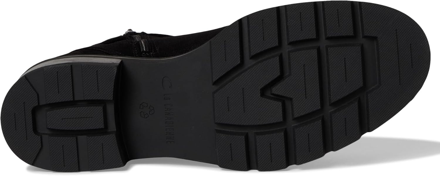 Elevate your Western style wearing the La Canadienne Steven! Suede boots featuring a practical zippered interior side closure, a unique buckle that details the heel, and a comfortable mid heel. The sole is made from recycled rubber, and the sole itself is recyclable. Our City Dry™ Technology features a waterproof Italian suede upper and a breathable microfiber lining that keeps you comfortable whether indoors or outside. City Dry™ guarantee excludes zippers.