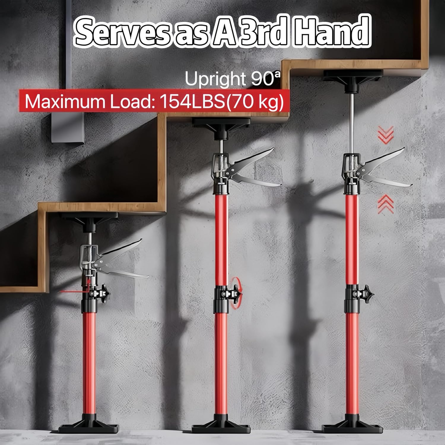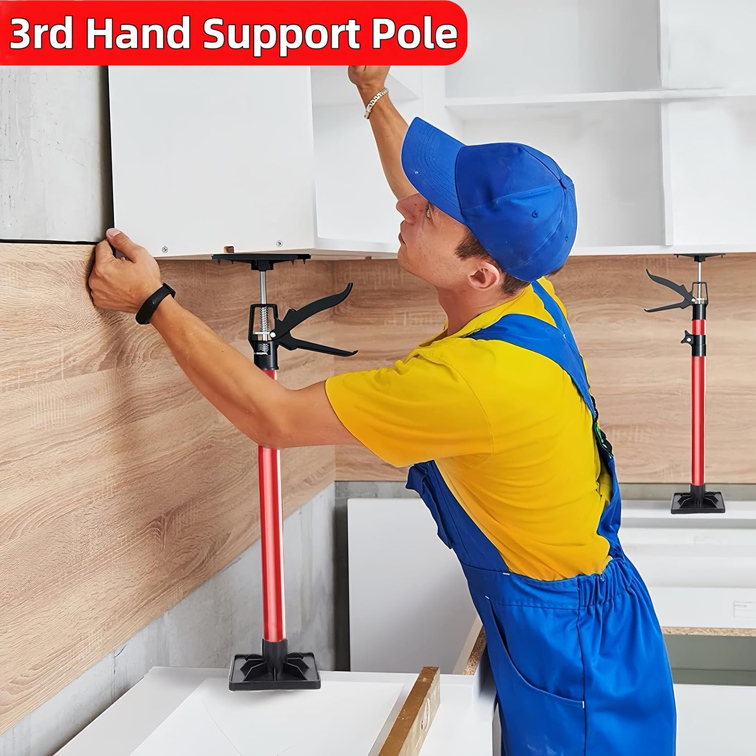 Sayehuanye Third hand support pole, which has 154lbs/70kg bearing capacity and expands from 20.3 to 45.3in (52 to 115cm), making it ideal for various renovation scenarios. Whether it's for cabinet installation, drywall lift, sink mounting, crown moldings, door parallel, staircase construction or shelving, this tool is your perfect home renovation companion