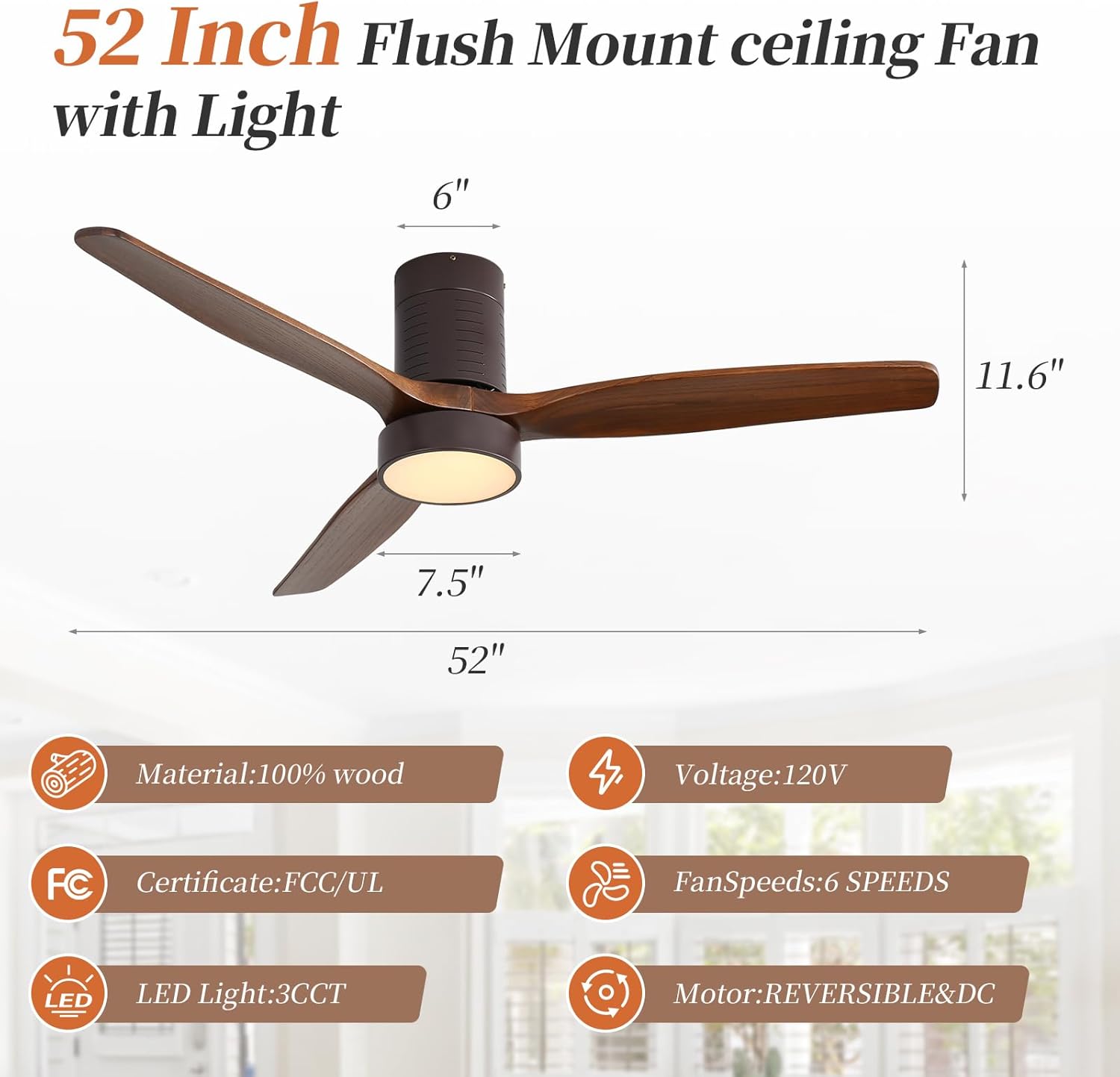 | Color | A-52 Inch/Flush Mount/Brown body/Walnut blades/with light |