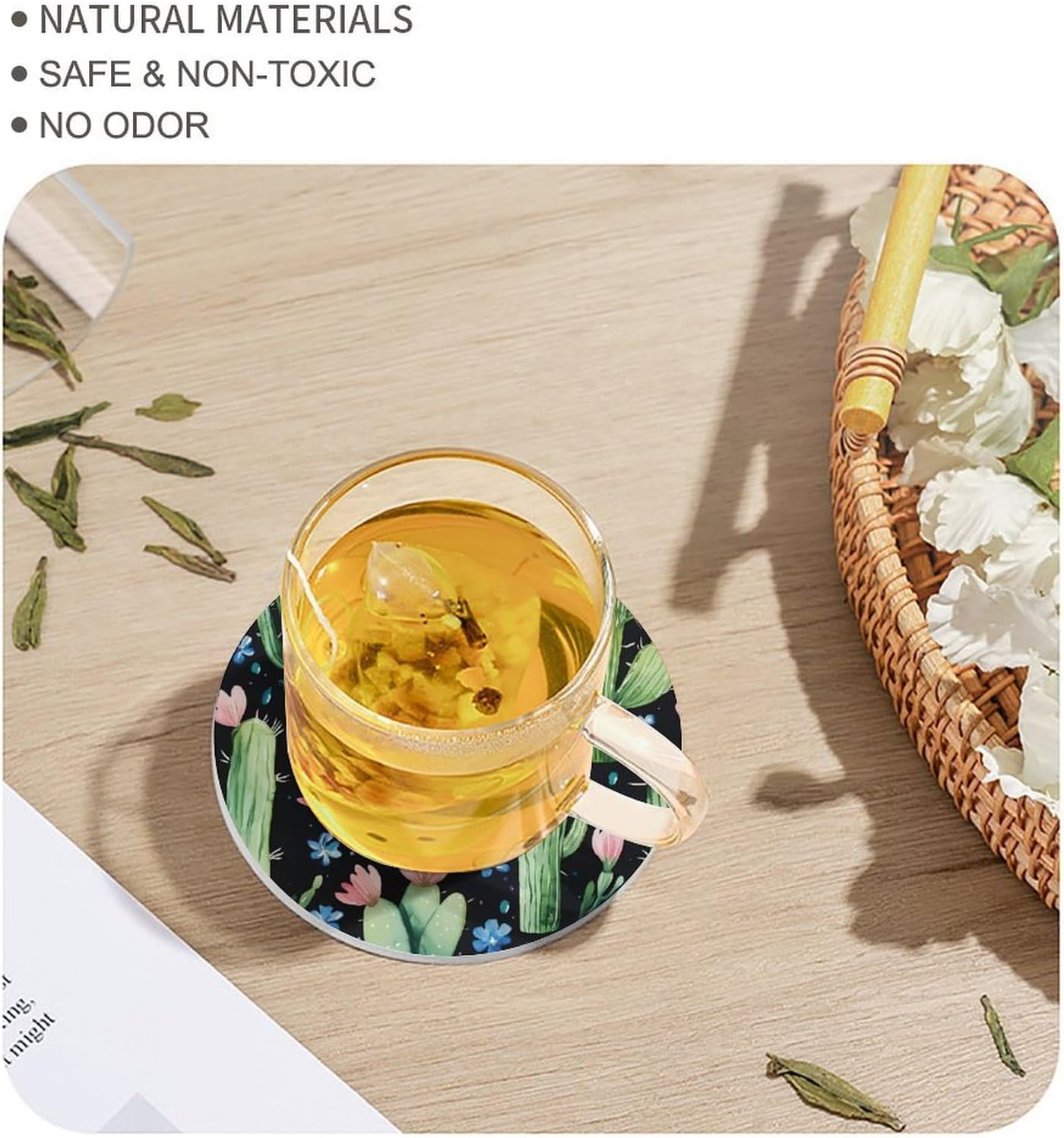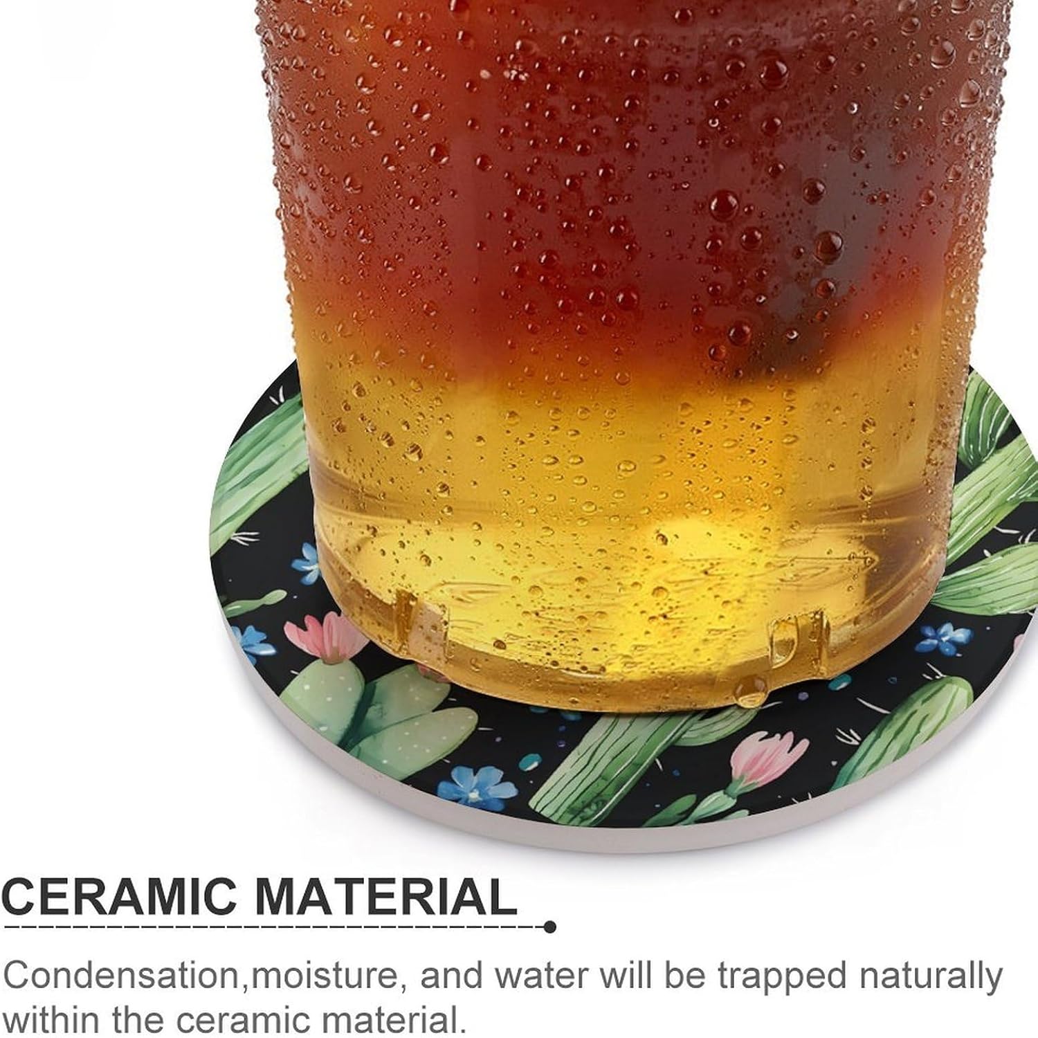Cute Printed Round Drinks Absorbent Ceramic Coaster with Cork Base Suitable for Kinds of Mugs, Cups, Prevent Tabletop Wear And Scratches, and is Easy to Clean