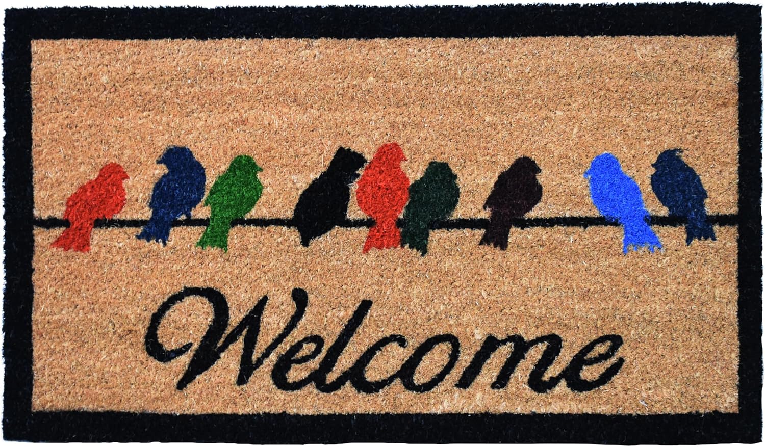 Made of coir, a dense fiber that is durable and coarse, excellent for scraping shoes clean. Vinyl backed for increased durability and to help prevent movement and retain their shape. For best results keep in a sheltered area such as a covered porch. Vacuum, sweep or lightly hose clean.