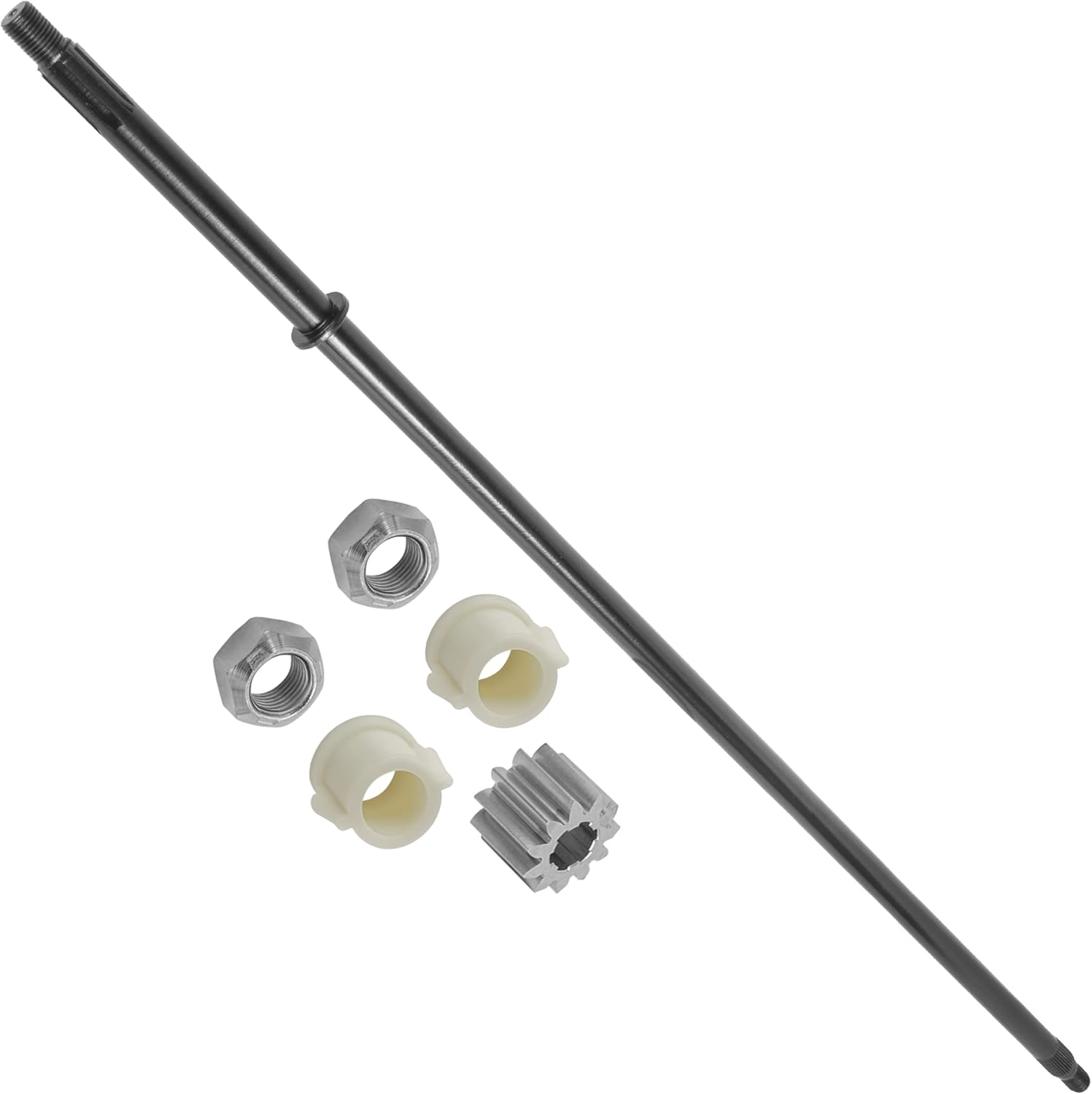 Compatible with John Deere models:102 105107H 107S 108 115 125 135 145 155 190CD100 D105 D110 D120 D125 D130 D140 D150 D155 D160 D170E100 E110 E120 E130 E140 E150 E160 E170 E180L100 L105 L107 L108 L110 L111 L118 L120 L130LA100 LA105 LA110 LA115 LA120 LA125 LA130 LA135 LA140 LA145 LA150 LA155 LA165 LA175Part Numbers:Shaft: GX20059Pinion Gear: GX20053, GX26220Bushings: GX21994, GX20057Lock Nut: UC29924, B30963