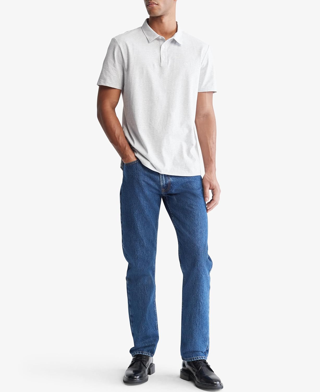 Sporty and modern, this signature Calvin Klein polo shirt is crafted from a compact cotton blend for a smooth hand with an extra sleek feel. Made with an embroidered monogram logo in a diverse array of seasonal colors. Perfect for the court or warm-weather special occasions, this pullover top is detailed with a compact logo at the chest, a covered placket polo shirt collar and a vented hem for an effortless fit.