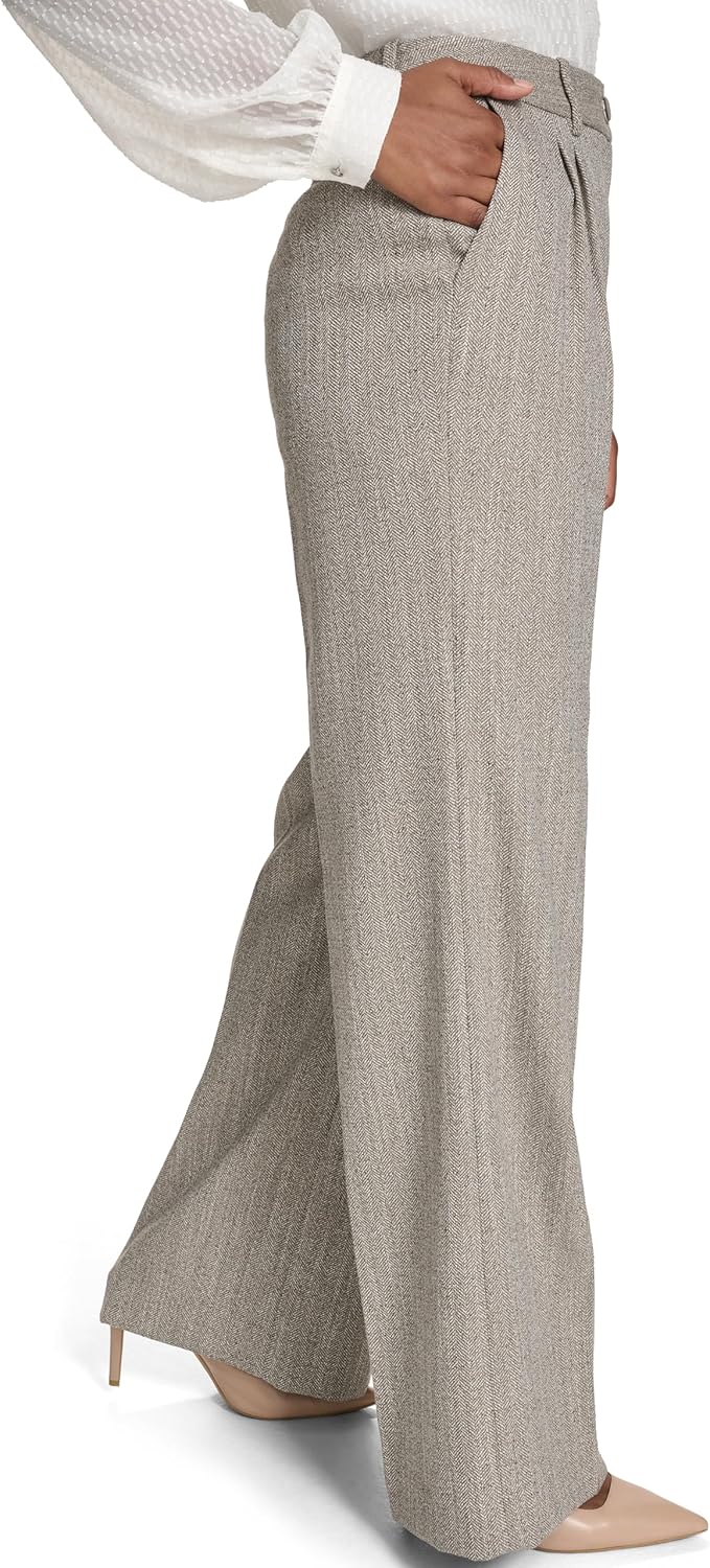 This Calvin Klein Women's Pant is a High Rise Wide Leg Pleated Pant