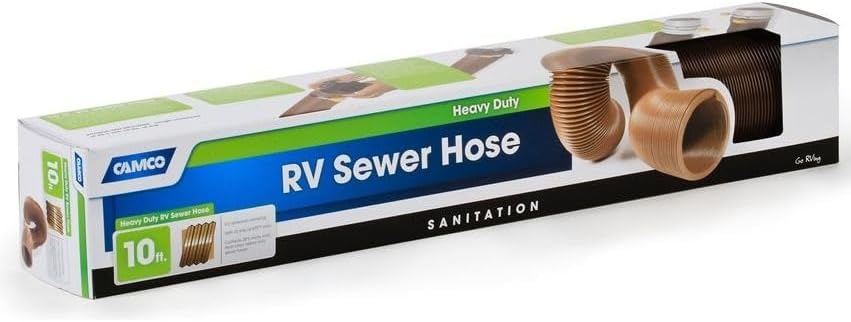 15 mils of brown HTS vinyl, created for the seasonal RVer who makes weekend trips during the summer camping season. The 10' hose compresses to 16"; the 15' to 26"; and the 20' hose to 32" for storage.