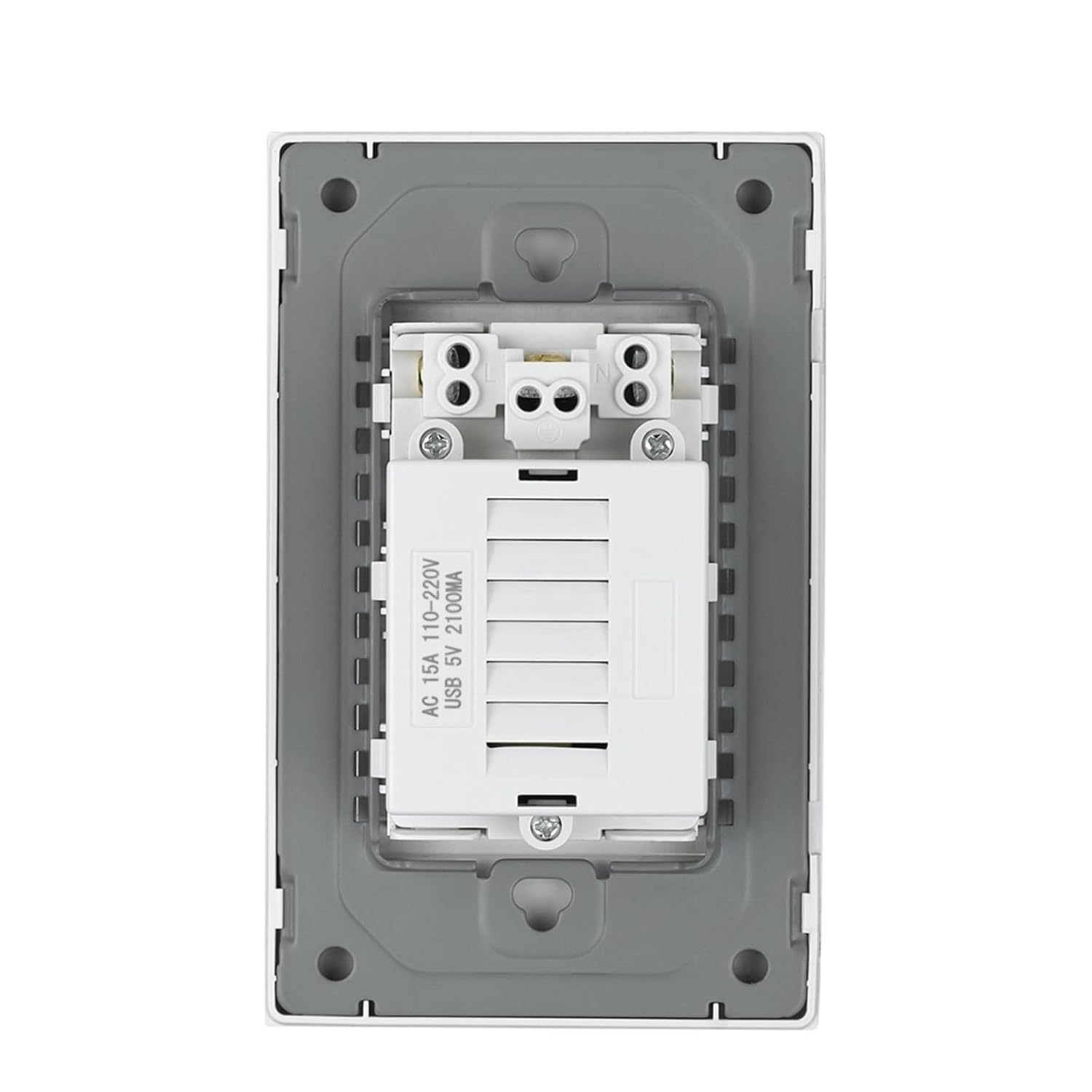 Standard Outlets==========Installation Type : Wall EmbeddedFeatures : With USB PortsExtension Cable Length : NoneShape : RectangularModel Number : K6USB0001Rated Current : 110-250VApplication : Residential / General-PurposeOrigin : Mainland ChinaStandard : 118*76Features 1 : AC 15A MAX 110-250VacFeatures 2 : DC 5V 2100mm/3100ma Electronic device chargerInput Voltage : AC 110~250VInput frequency : 50HZ~60HZMounting hole distance : 85mm
