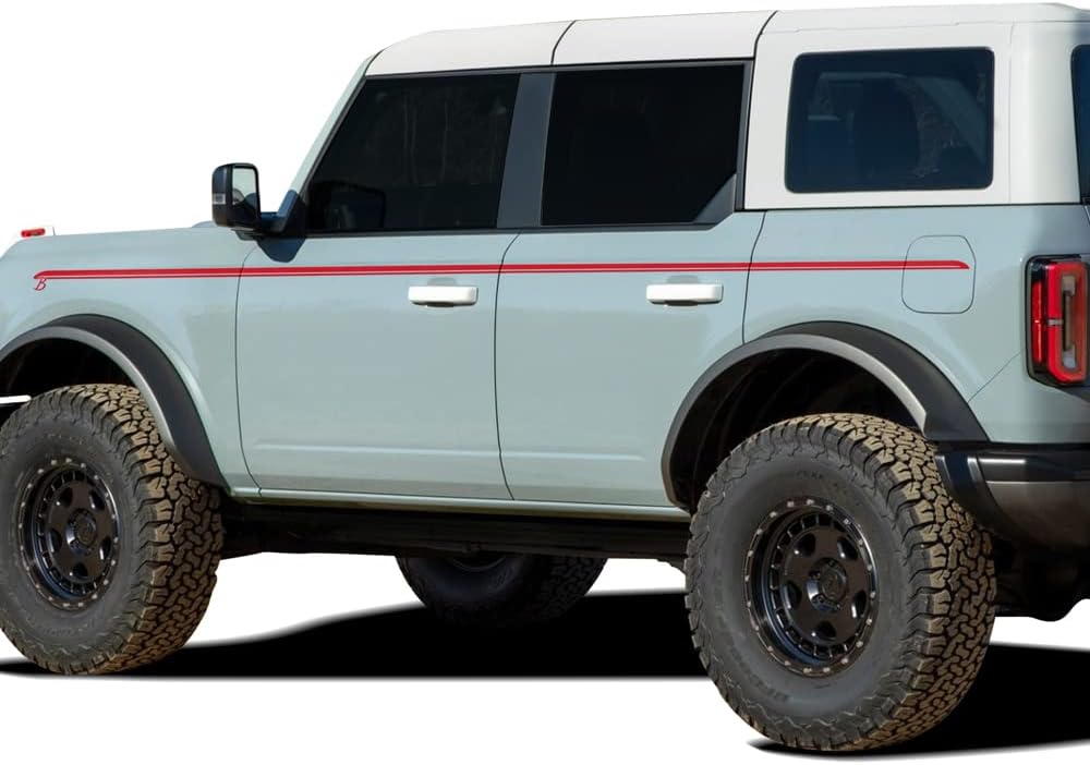 Item Fitment: for Bronco 4-Door 2021 2022 2023 High quality KK vinyl material with long life span (3-5 Years) Color: Gloss Red Package Include: 2 Pieces Upper Door Line Stripes for Passenger and Driver Sides