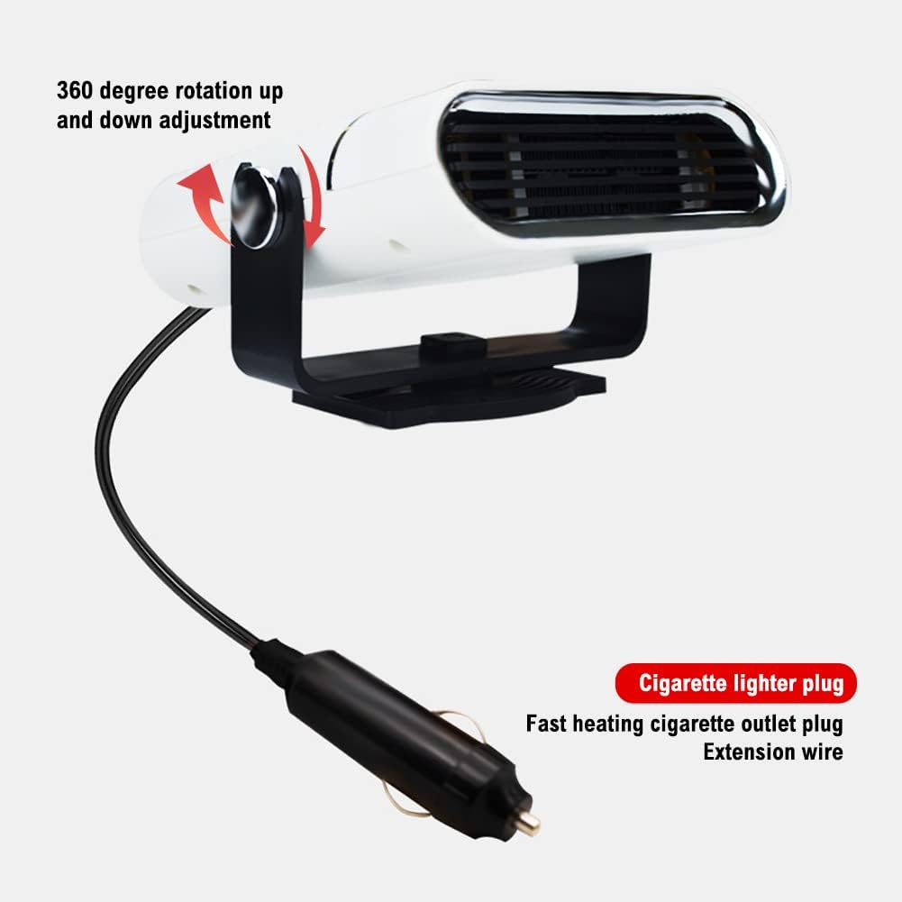 1. Defrost And Defogging: This Car Heater Effectively Removes Frost And Fog From Glass Surfaces, Providing Uninterrupted Visibility In Adverse Weather Conditions And Enhancing Driving Safety2. Fast Heating System: The 1800w High-Density Heating Design Ensures Efficient Car Heating, Delivering Even Warmth In Under 3 Seconds For Maximum Comfort During Cold Weather Use3. Flexible Airflow Control: Experience 360-Degree Airflow And A Multi-Directional Rotation Mechanism For Flexible Use In Any Vehicle Setting, Effortlessly Enhancing Comfort4. Easy To Use: Bottom Buttons Enable Straightforward Operation, And Plug-And-Play Functionality Simplifies Setup And Enhances User Accessibility For All DriversSpecification:Style: Without Bracket, With Bracket (Optional)Length Of Power Line: About 1.5mProduct Material: Abs+FanNote:Due To The Different Monitor And Light Effect, The Actual Color Of The Item Might Be Slightly Different From The Color Showed On The Pictures. Thank You!Please Allow 1-2cm Measuring Deviation Due To Manual Measurement