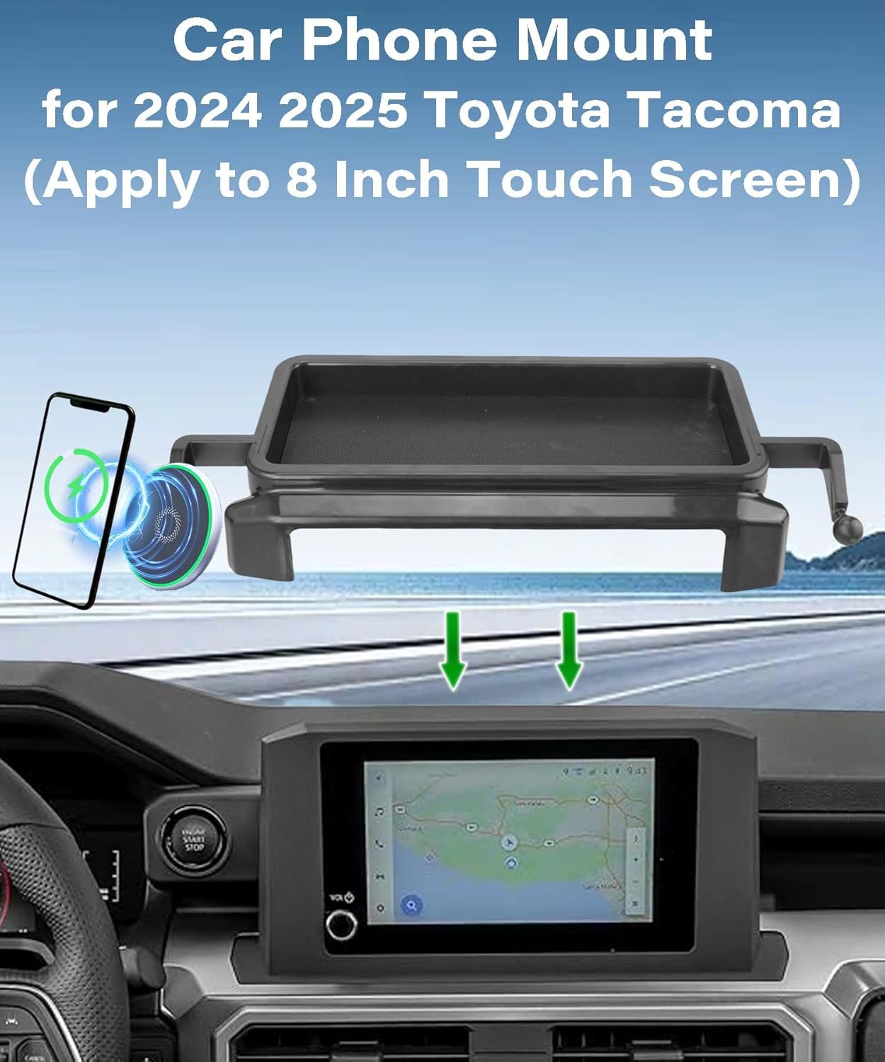 | Whats in the box | 1* Magnetic Ring, 1* Phone Mount for 2024 2025 Toyota Tacoma (Apply to 8 Inch Touch Screen), 1* USB To TEPY-C Charging Cable |