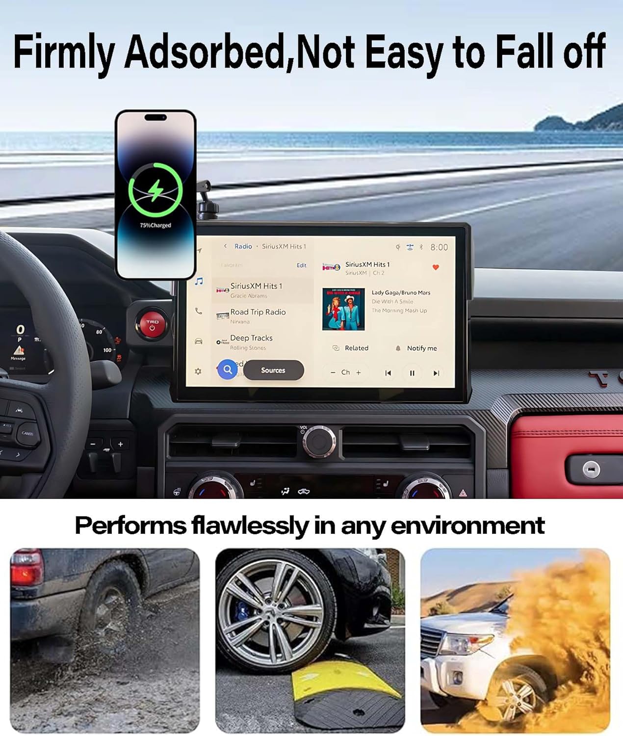 Transform your for 2024 2025 Toyota Tacoma driving experience with this innovative phone mount designed specifically for 8-inch touch screens. This versatile mount offers seamless one-hand operation and robust magnetic attachment, ensuring your phone stays firmly in place during every journey. Compatible for the iphone 16/15/14/13/12/MINI/Pro/Plus/Pro Max and official MagSafe cases The mount features 360-degree rotation capability for optimal viewing angles and comes with two metal rings for non-Magnetic devices. Its sturdy construction and secure mounting system perform reliably across various driving conditions - from rough terrain to smooth highways. The sleek design integrates perfectly with your Tacoma interior while maintaining easy access to your vehicle's touch screen. Installation is straightforward, and the mount's practical design ensures it won't interfere with your vehicle's functionality.
