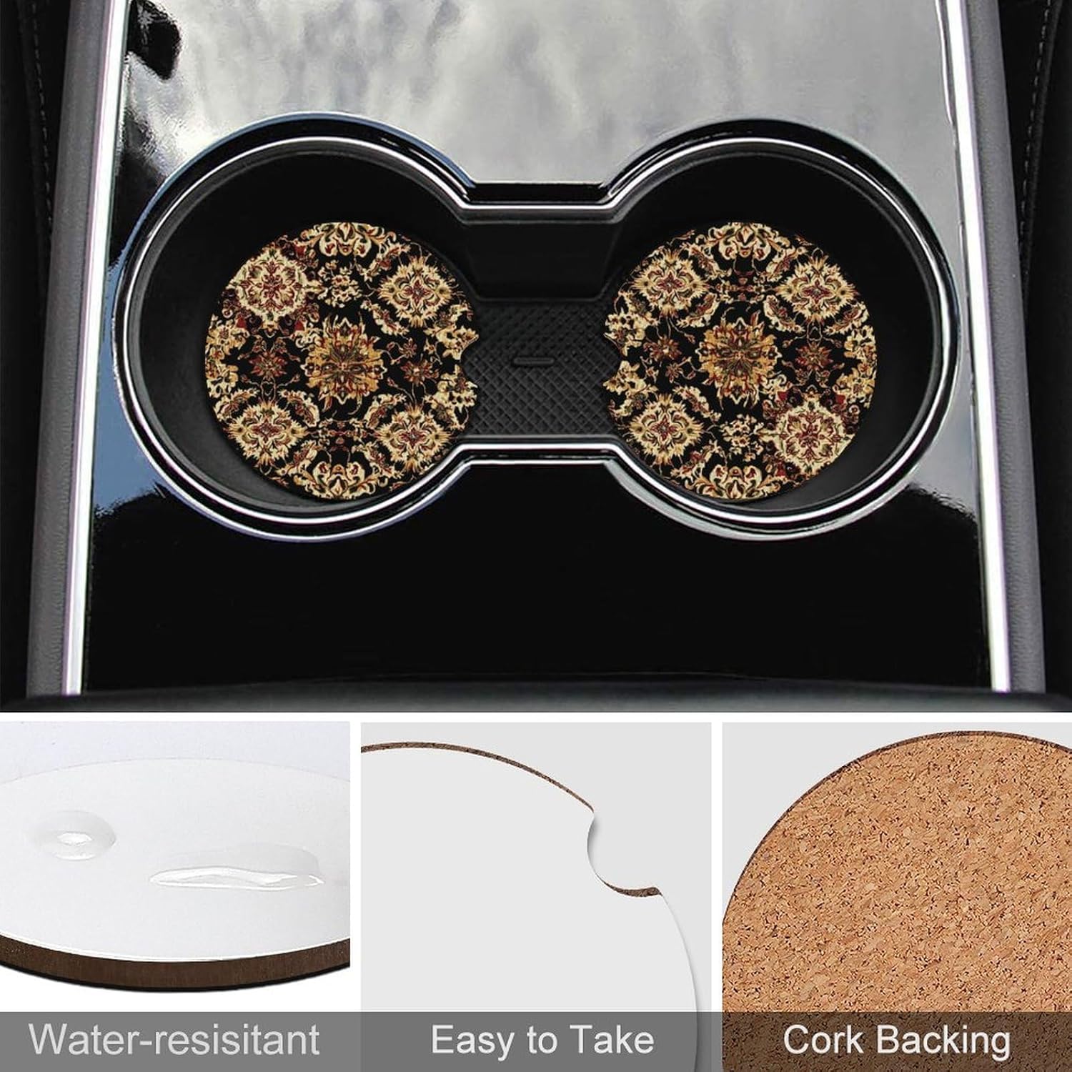 car coasters,coasters set of 6,coasters set of 4,car cup coasters,cup holder coasters for car Round Wood Car Cup Holder Coaster 2.56 Inches Cute Absorbent for Drinks Coaster Auto Interior Decorative Accessories with Funny Pattern Design
