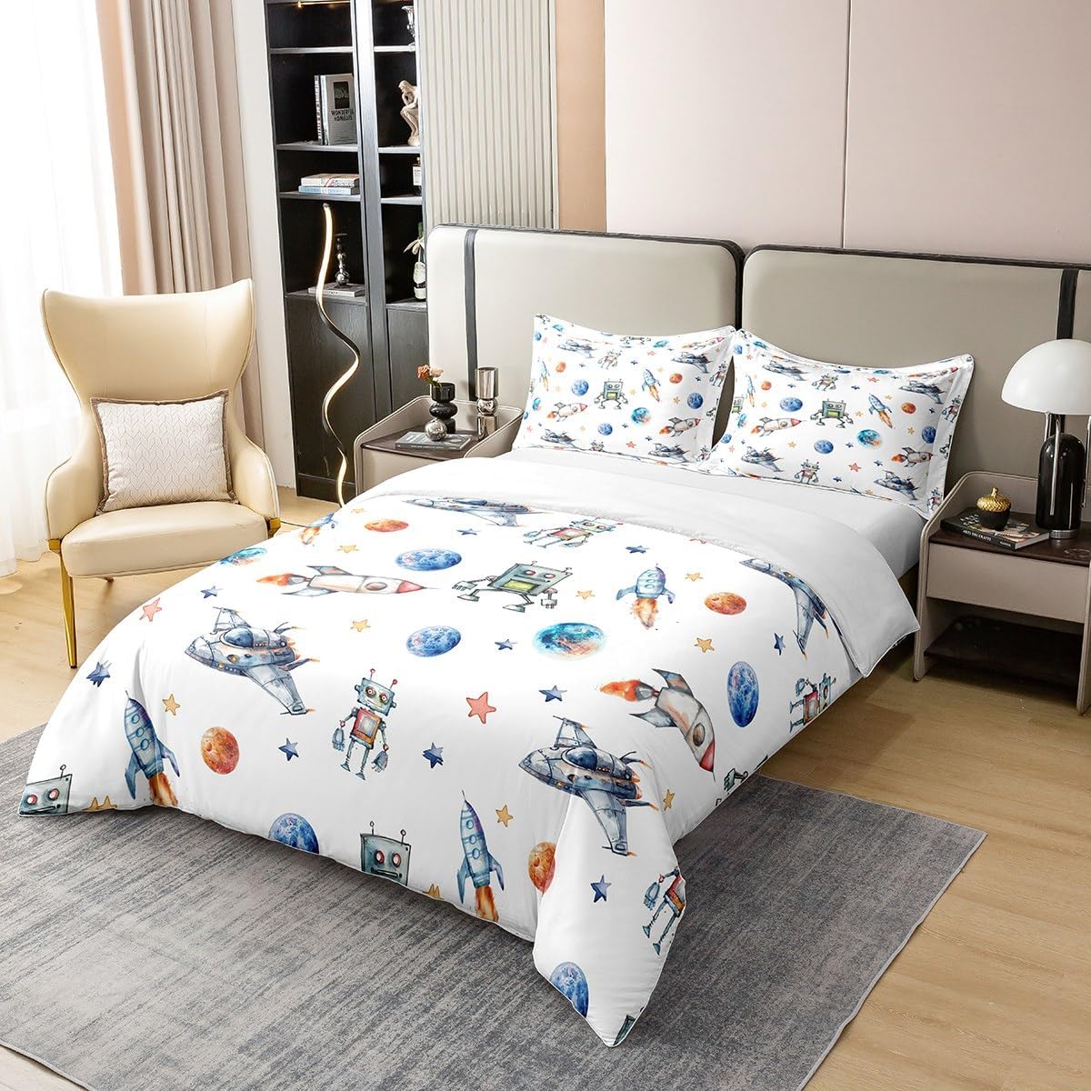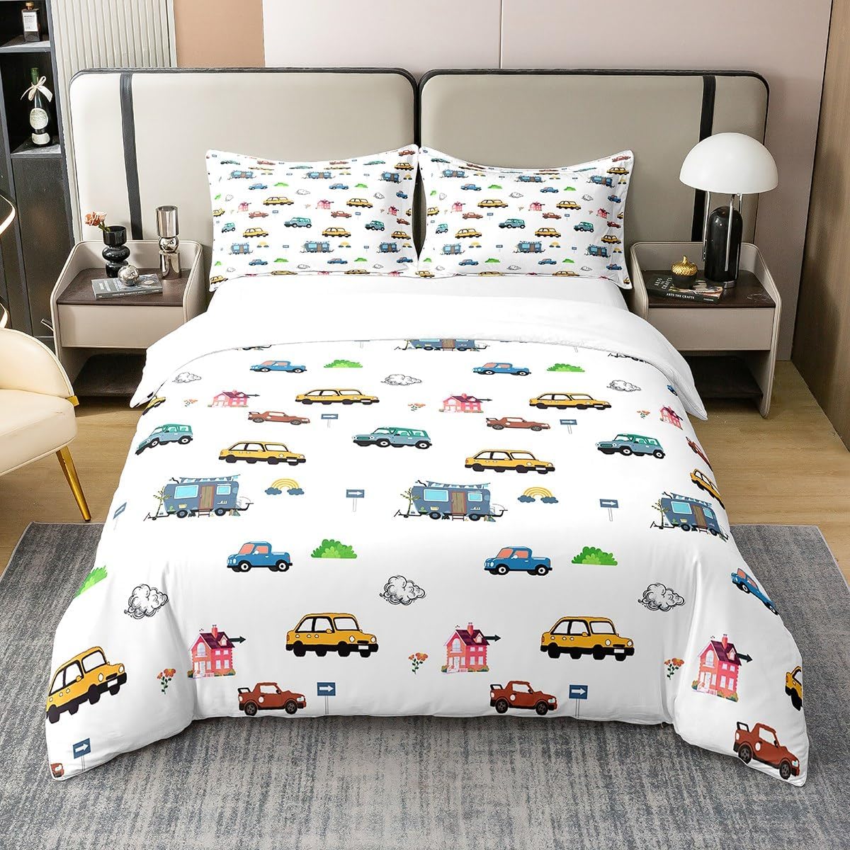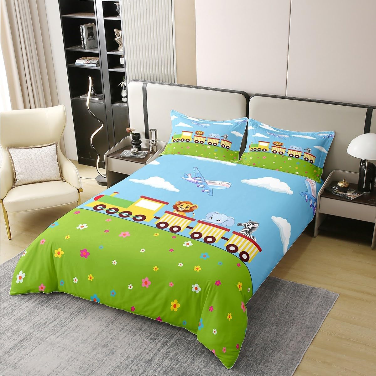 Package Include: Duvet Cover and Pillowcase, no comforter or sheet Quality duvet cover set pattern bedding set, simply decorating your rooms any time you want, bringing you fresh feel for year round use Material: Made from 100% Cotton Size Information: Twin size 2pcs duvet cover set: 1 Duvet Cover 68" x 90" 173 x 229cm, 1 pillowcase 20" x 30" 51x75cm Full size 3pcs duvet cover set: 1 Duvet Cover 80" x 90" 200 x 229cm, 2 pillowcase 20" x 30" 51 x 75cm Queen size 3pcs duvet cover set: 1 Duvet Cover 90" x 90" 229 x 229cm, 2 pillowcase 20" x 30" 51 x 75cm King size 3pcs duvet cover set: 1 Duvet Cover 104" x 90" 264 x 229cm, 2 pillowcase 20" x 36" 51 x 92cm Personalize your bedroom: Beautiful design and colorful print, making your bedroom unique and bringing you a wonderful dream Washing instructions: Machine wash separately in cold water, hang dry, do not bleach Occasion: The cute soft duvet cover bedding sets designed for children, adults, men, women, teens. This duvet cover set is also suitable for all seasons, spring, summer, autumn and winter. Warm Tips: There may be some slight differences between the color tone of the pictures and that of the actual items due to lighting effects, monitor's brightness, etc.