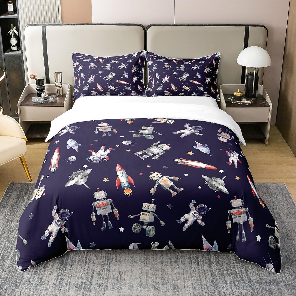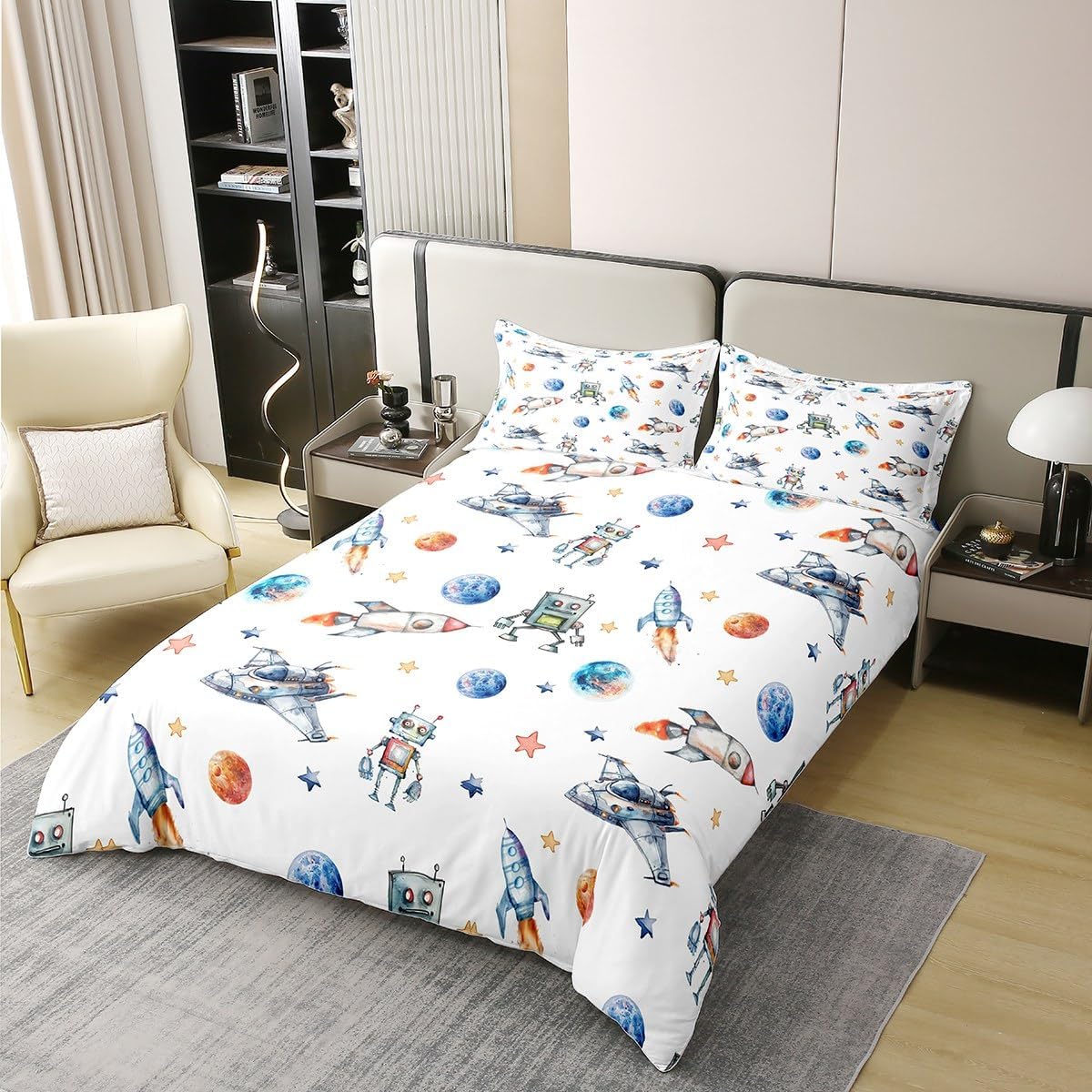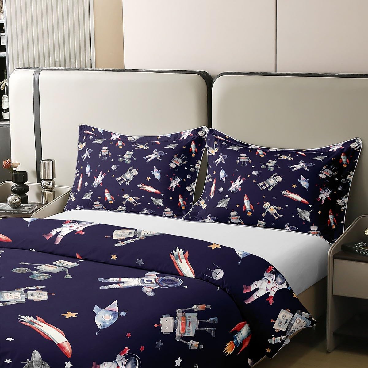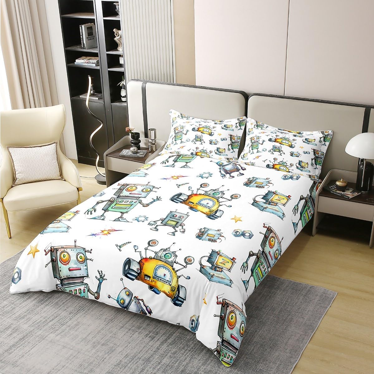 Package Include: Duvet Cover and Pillowcase, no comforter or sheet Quality duvet cover set pattern bedding set, simply decorating your rooms any time you want, bringing you fresh feel for year round use Material: Made from 100% Cotton Size Information: Twin size 2pcs duvet cover set: 1 Duvet Cover 68" x 90" 173 x 229cm, 1 pillowcase 20" x 30" 51x75cm Full size 3pcs duvet cover set: 1 Duvet Cover 80" x 90" 200 x 229cm, 2 pillowcase 20" x 30" 51 x 75cm Queen size 3pcs duvet cover set: 1 Duvet Cover 90" x 90" 229 x 229cm, 2 pillowcase 20" x 30" 51 x 75cm King size 3pcs duvet cover set: 1 Duvet Cover 104" x 90" 264 x 229cm, 2 pillowcase 20" x 36" 51 x 92cm Personalize your bedroom: Beautiful design and colorful print, making your bedroom unique and bringing you a wonderful dream Washing instructions: Machine wash separately in cold water, hang dry, do not bleach Occasion: The cute soft duvet cover bedding sets designed for children, adults, men, women, teens. This duvet cover set is also suitable for all seasons, spring, summer, autumn and winter. Warm Tips: There may be some slight differences between the color tone of the pictures and that of the actual items due to lighting effects, monitor's brightness, etc.