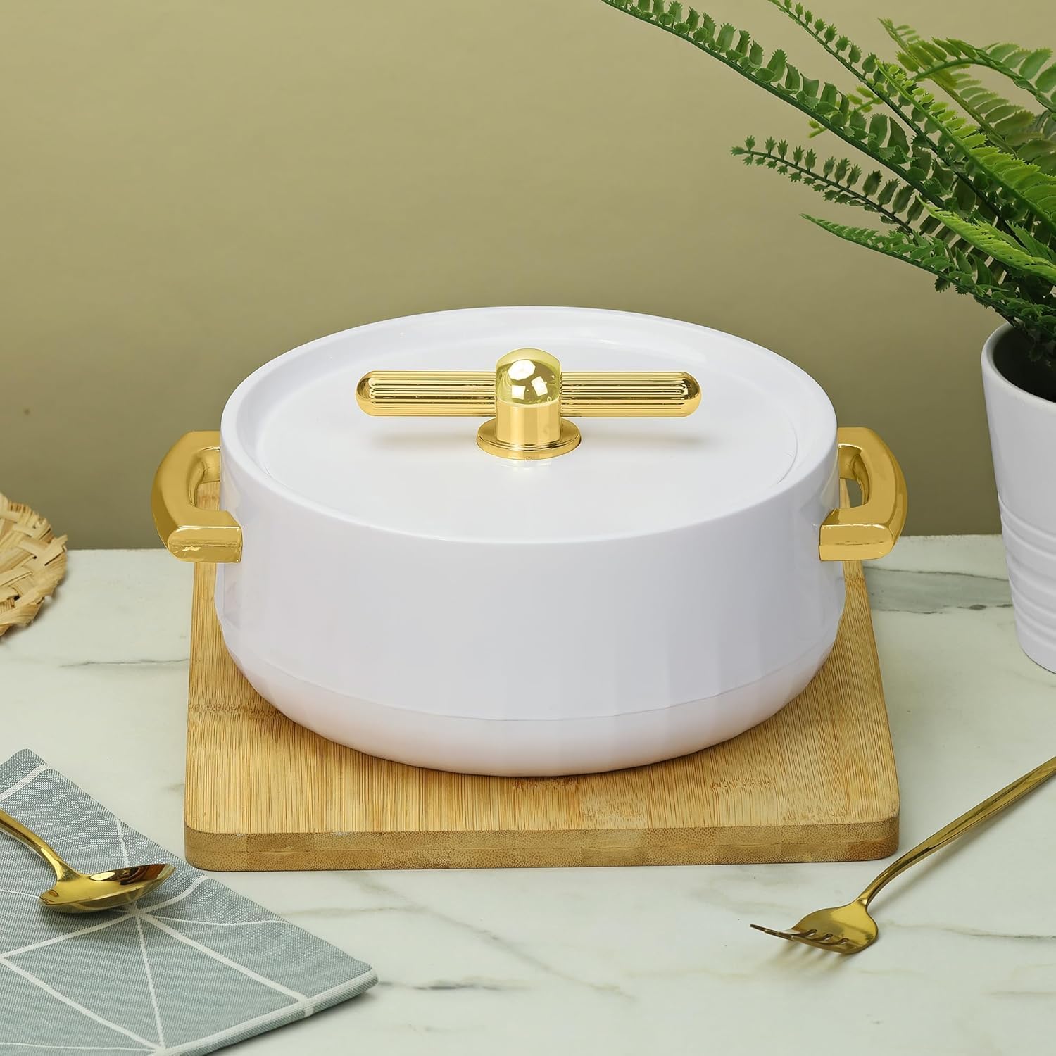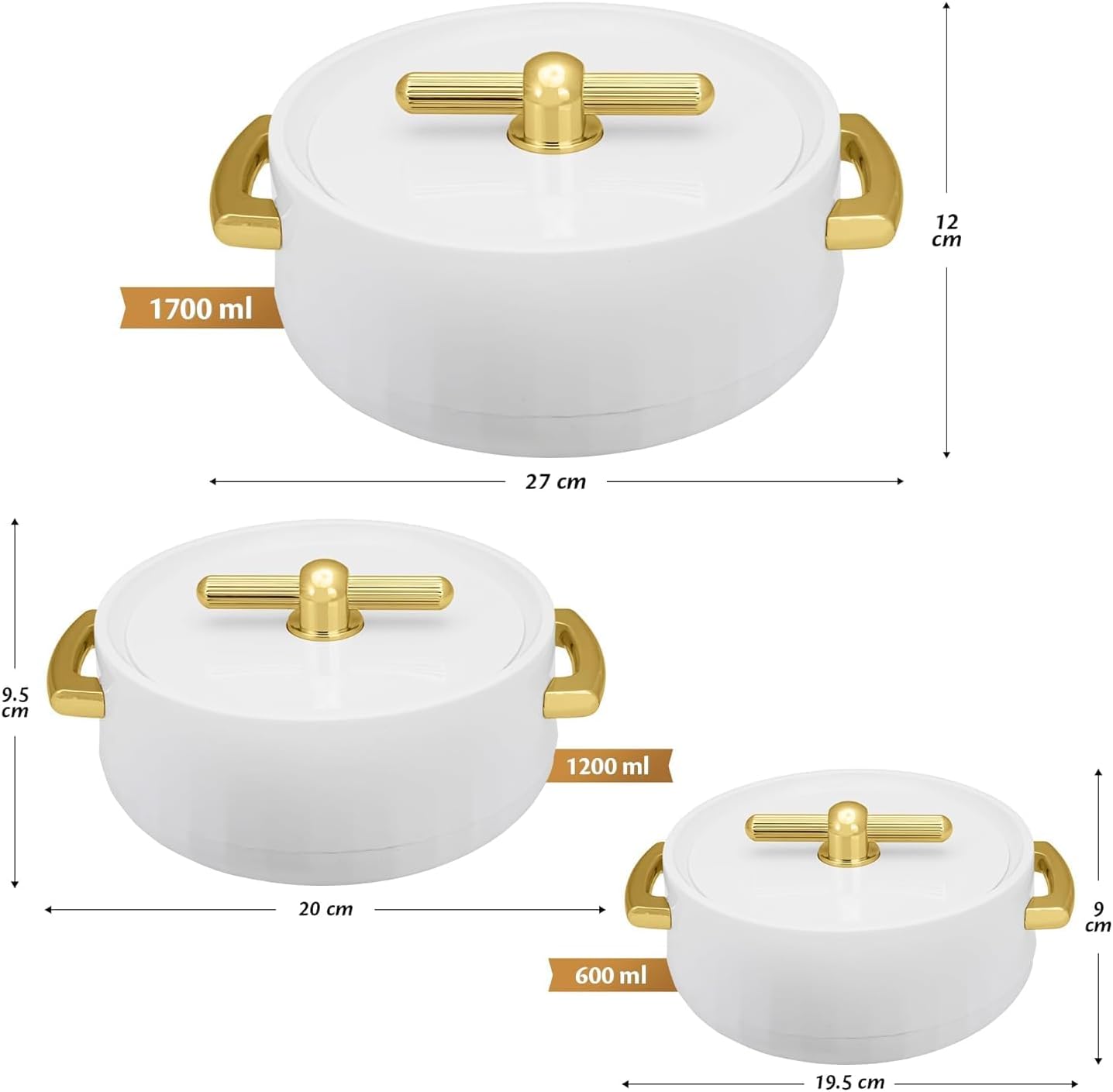 Casserole Inner Stainless Steel Serving Casserole PU Insulated Kitchen Hot Pot, Keeps Food hot & Fresh for Roti, Biryani, Chapati Set of 3 (1700ml, 1200ml, 600ml) Pearl White