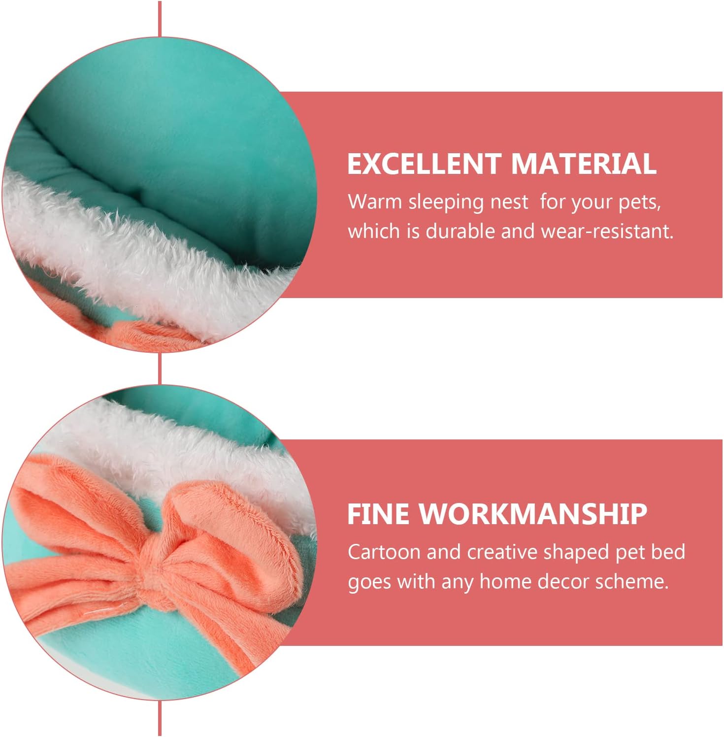 DescriptionAre you seeking for a suitable and comfortable pet bed for your beloved pet? This warm bed is your bet! Suitable for cat, dog, it provides your pet with a snug and location. Made of , soft, warm, comfortable and easy to wash. Hence, your pet will love it, the moment it sees the bed.Features- Color:Green- Material:Short plush down cotton- Size:45. 00X45. 00X32. 00cm/17. 68X17. 68X12. 58in- Warm sleeping nest for, which is durable and wear- resistant.- The winter house will bring security to pets, such as dogs, cats, etc.- place for pet to sleep, play and have a rest. They will feel safe inside the house.- The hideaway and a quiet, private place to sleep for.- Cartoon and creative shaped pet bed goes with any home decor scheme. Package Including 1 x Cat Nest
