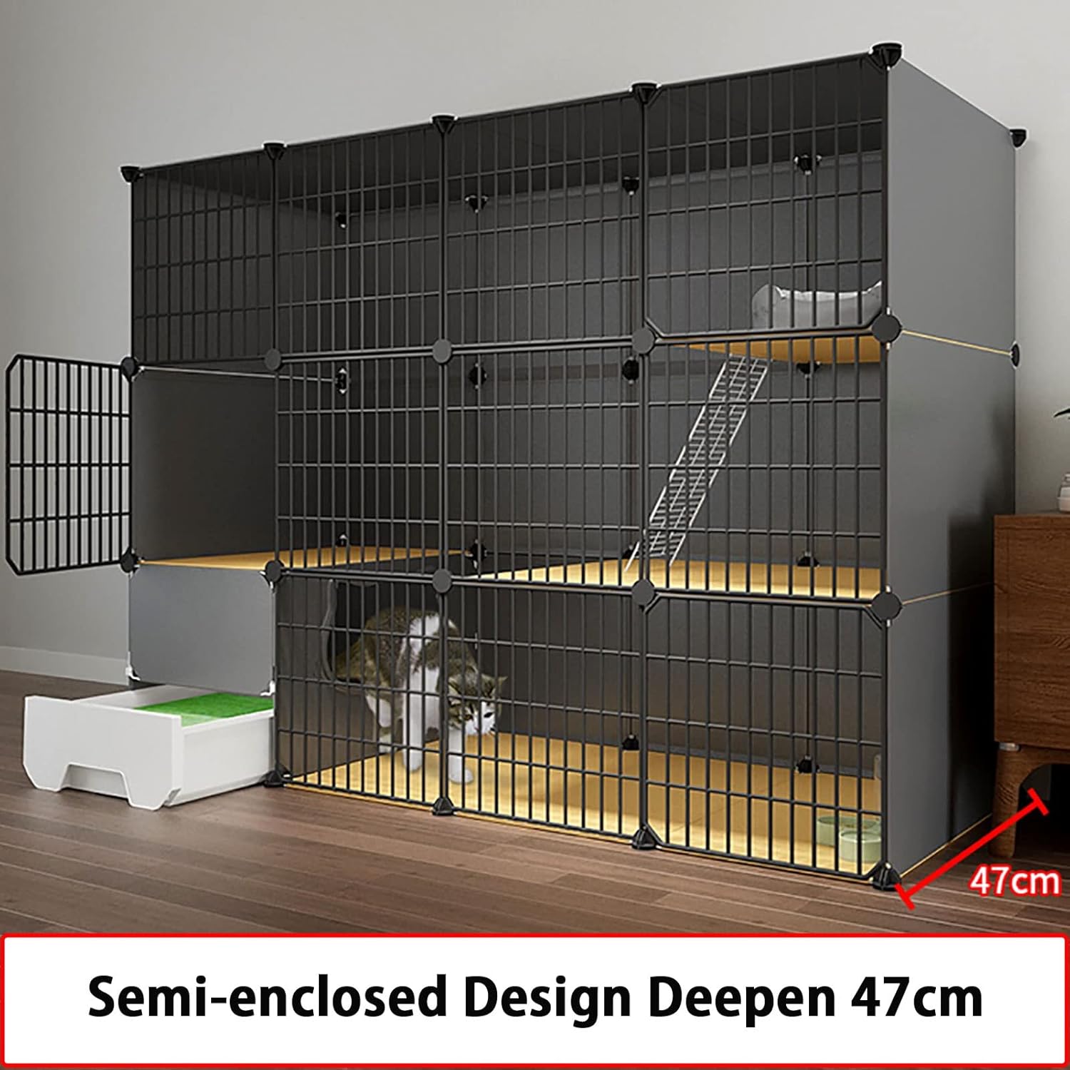 Large cat playpen is not a cage for your kitten,but an amusement park for them. The interesting design,will bring a lot of fun to your little cats. The sturdy and durable frame ensures their safety. It‘s a good friend both for you and your cats. Hight-quality Metal Frame You can put pet supplies on the platform The platform serves as a resting and playing area The metal frame can effectively support the weight of the platform and cage Specifications: Color: Black Material: Metal,ABS Plastic Suitable: cats,guinea pigs and ferrets,Rabbits and other small pets Package include: 1x cat cage 1x Cat nest 1x Cat litter box 1x Cat hammock