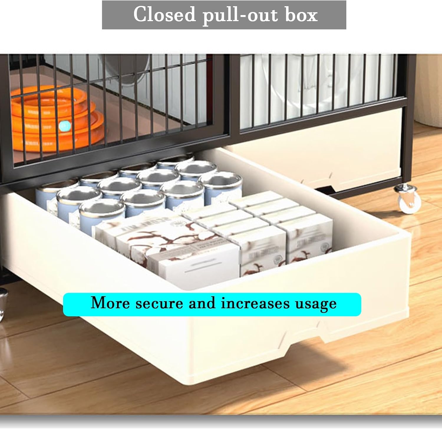 ◆The cat villa castle is warm and beautiful, with a spacious interior space. The 3-layer large space is available for cats to rest and play. Cats can move freely in it without restraint.◆It comes with a closed cat litter box, which effectively isolates odors, and the drawer design is convenient for cleaning cat litter.◆The storage design of the drawer on the right side of the bottom makes it convenient to take items, and cat supplies can be placed in it.◆The overall iron mesh design gives the cat a wide field of vision and good air permeability, and it is also convenient for you to observe the dynamics of the cat.◆The universal wheels at the bottom can be easily moved and can be braked and fixed, saving time and effort whether the cat cage is cleaned or relocated.☁Product parameters-Product name: Cat cage with cat litter box-Style: Modern and simple-Material: Iron + Wood-Color: White/Gold/Black-Size: 83x59x136cm (32.6x23.2x53.5in)-Purpose: Pet rest, sleep, play-Installation method: self-assembly♥Purchase instructions:●This product needs to be assembled by yourself.●Due to manual measurement, there will be a 1-3cm error in product size.●Due to differences in display parameters, colors may vary, please refer to the actual product.