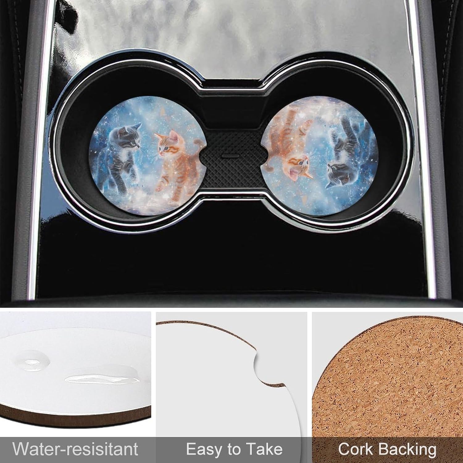 car coasters,coasters set of 6,coasters set of 4,car cup coasters,cup holder coasters for car Round Wood Car Cup Holder Coaster 2.56 Inches Cute Absorbent for Drinks Coaster Auto Interior Decorative Accessories with Funny Pattern Design