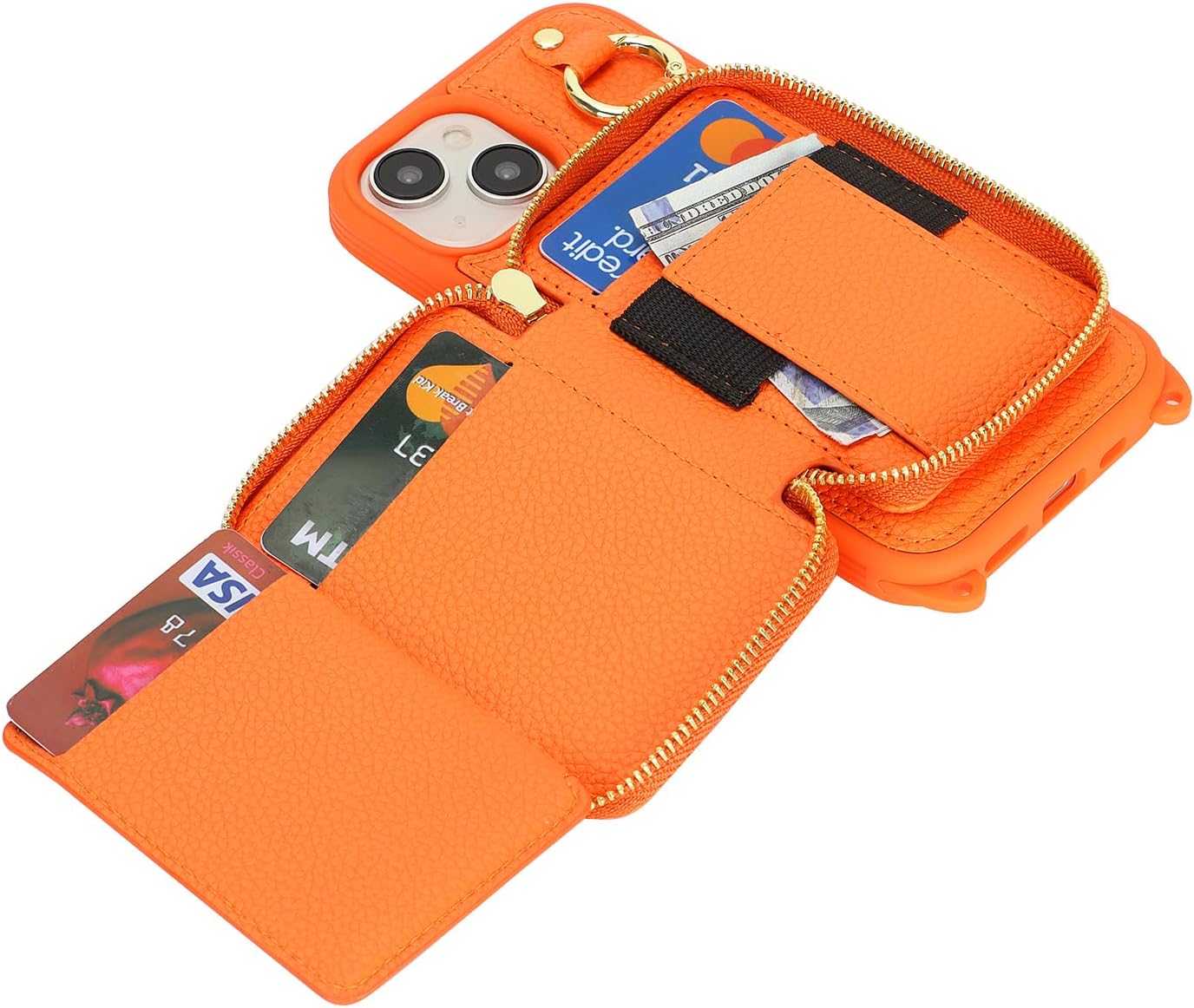 Cavor for iPhone 13 Wallet Case with Card Holder for Women Men, for iPhone 13 Case with Strap, Crossbody Lanyard Phone Case, Magnetic Detachable Compatible with Magsafe-Orange