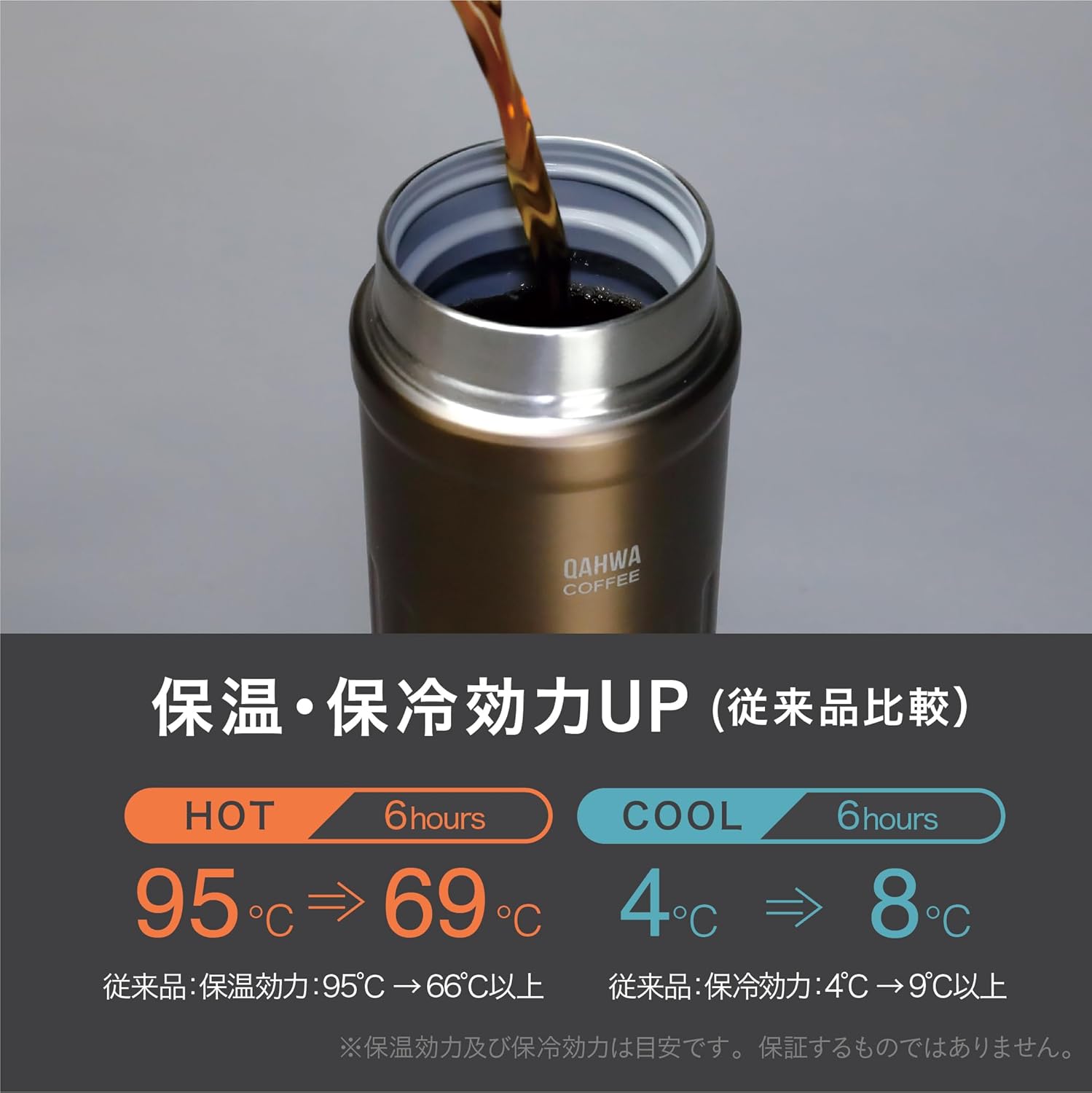 Product Size: Approx. Diameter 2.6 x Height 7.2 inches (6.7 x 18.3 cm). Product Weight: Approx. 7.5 oz (210 g). Actual Capacity: Approx. 14.1 fl oz (410 ml). Main Materials: Inner Bottle: Stainless steel (fluorine resin coating); Body: Stainless steel (acrylic resin coating); Lid: Stainless steel (exterior): Stainless steel (acrylic resin coating); Lid (interior): Polypropylene; Gasket: Silicone rubber. Heat Retention: Over 148°F (69°C) (6 hours), Cold Retention: Less than 176°F (8°C) (6 hours) Not dishwasher or dish dryer. Please do not soak (leave in water) Can be washed thoroughly.