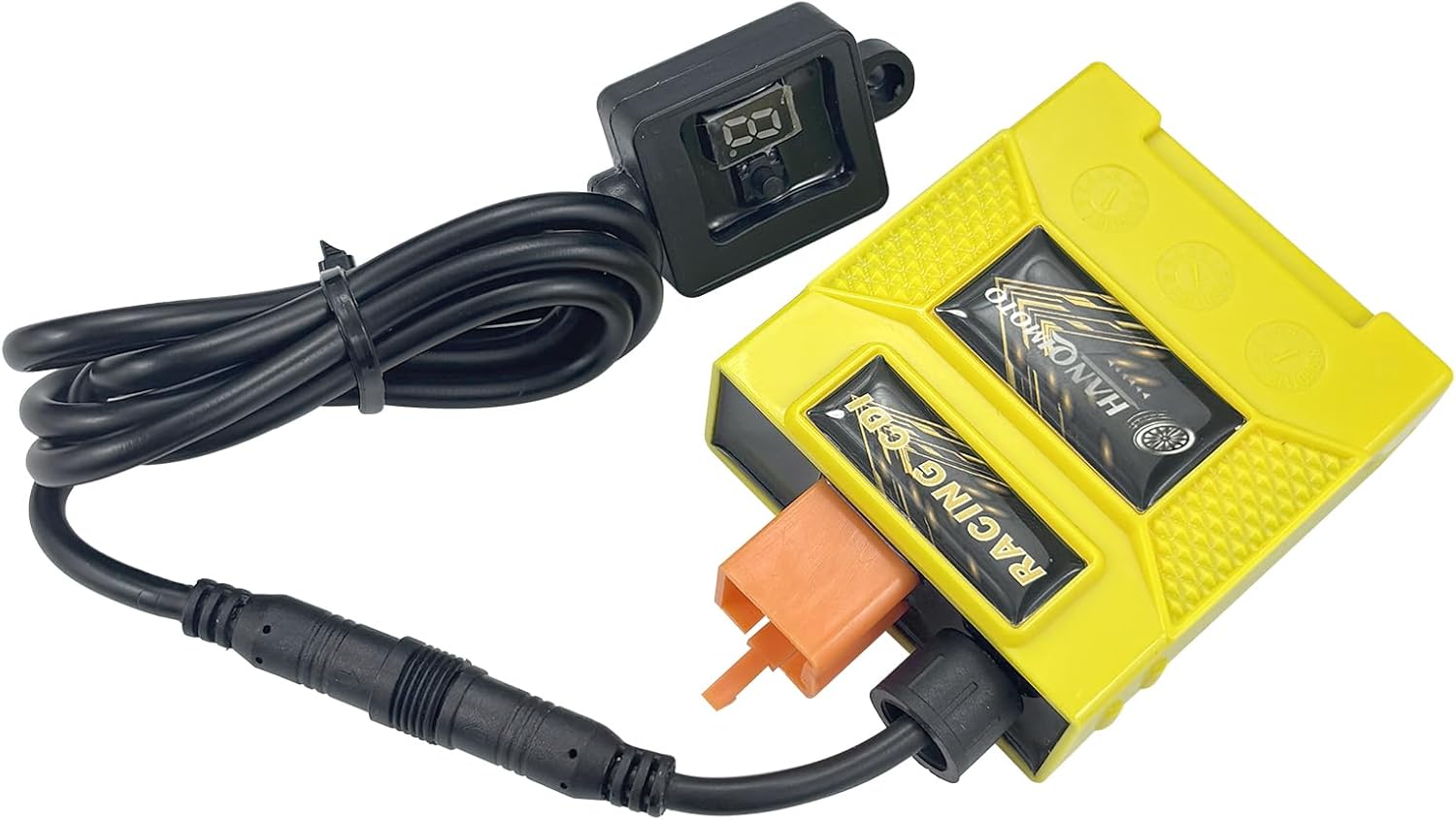 Digital Adjustable CDI Instruction: 1. After the CDI is turned on, the digital tube displays the curve before the last shutting down. 2.Every time you press the button, the number in the digital tube is added up by 1.0-9, and it will be displayed in a loop.0 means no ignition, 1-9 means 9 ignition curves. 3.The number will be remembered after each press, and the last ignition curve will still be displayed after the power is off. 4.The ignition curve 1 imeans that the ignition angle is relatively low, and 9 means that the ignition angle is high.The ignition angle difference between each curve is 1-2 degrees. 5.According to different sites and road conditions, choose different ignition curves to match.