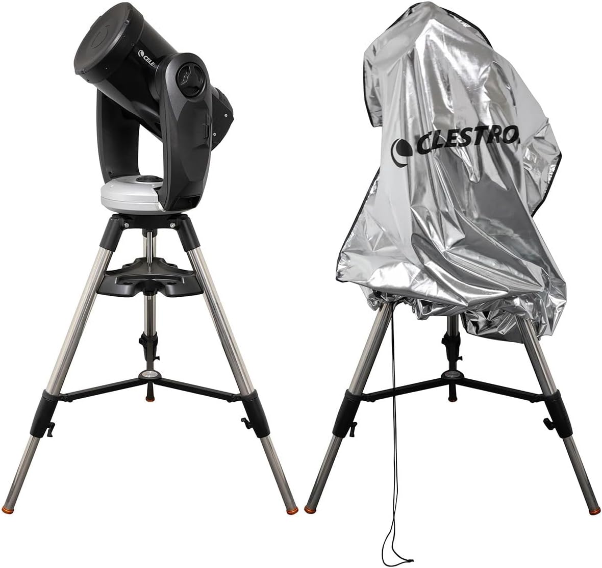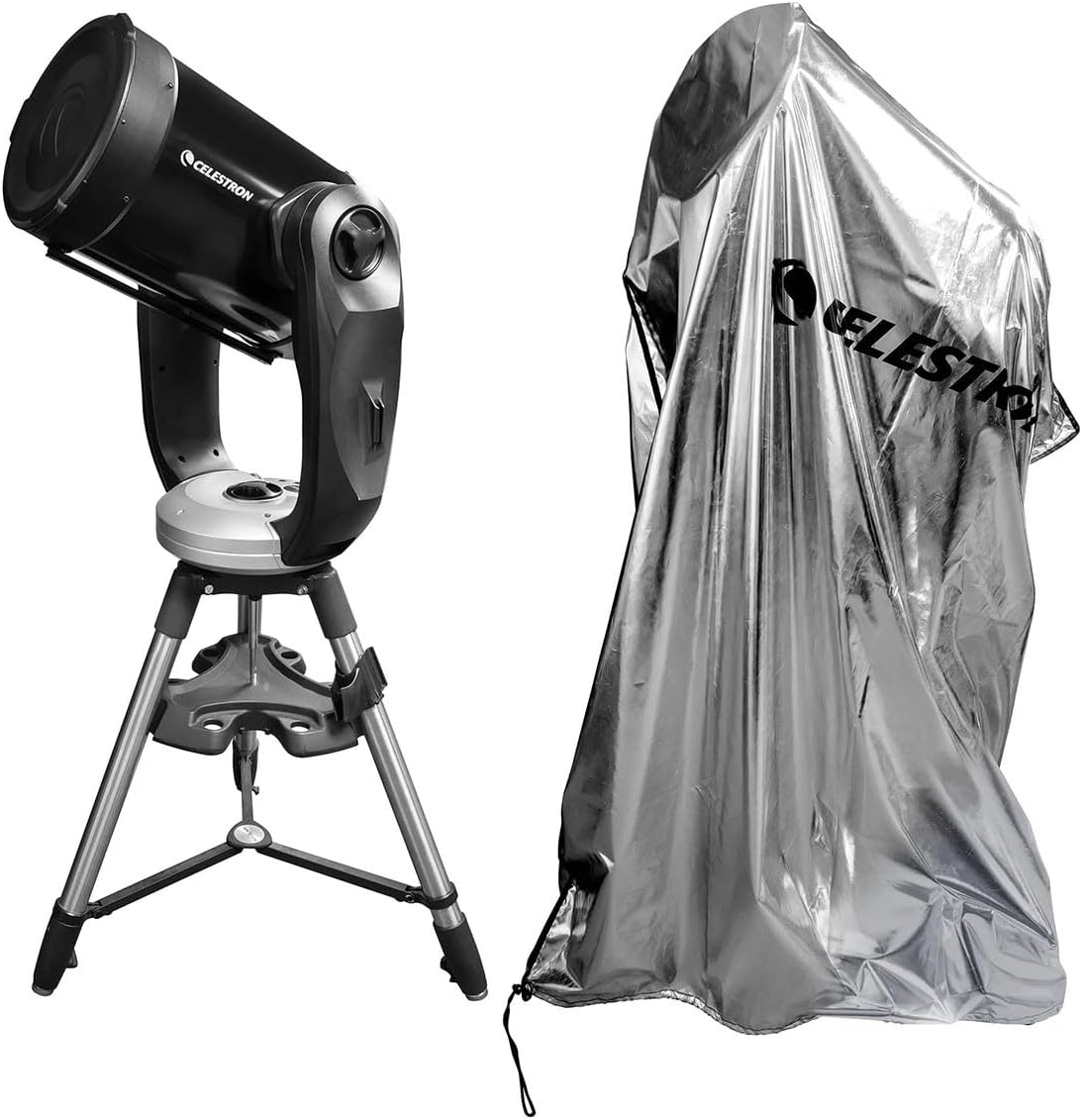 As much as we plan our observing or imaging sessions for perfect weather, the sky doesn't always cooperate. Celestron's Weatherproof Telescope Cover gives you peace of mind when your gear needs to stay set up-but you're not actively using it. Whether you're keeping your rig assembled between nights at a star party or pausing while weather passes through, this lightweight, packable cover offers reliable short-term protection from dew, dust, light rain, and sun exposure.Less ThanbRGreater ThanMade from aluminum-laminated fabric, the silver outer layer reflects sunlight to keep your equipment cool during the day and insulated at night, helping maintain a stable internal temperature. Inside, the soft 210D polyester lining adds a protective barrier for your telescope's finish. A built-in cinch-style drawstring lets you secure the cover in place. Depending on your setup, you can adjust the height of the cover for a customized fit-blocking out wind, dust, and light moisture while keeping everything protected and stable.Less ThanbRGreater ThanThe Weatherproof Telescope Cover is designed with portability in mind. Weighing just 1.34 lb., it's light enough to take anywhere without adding bulk to your gear. When not in use, the cover folds down to a compact size, making it easy to store in a gear bag, vehicle, or observatory drawer. After time in the field, it's easy to wipe clean with a damp cloth or mild soap and water-no special care required.