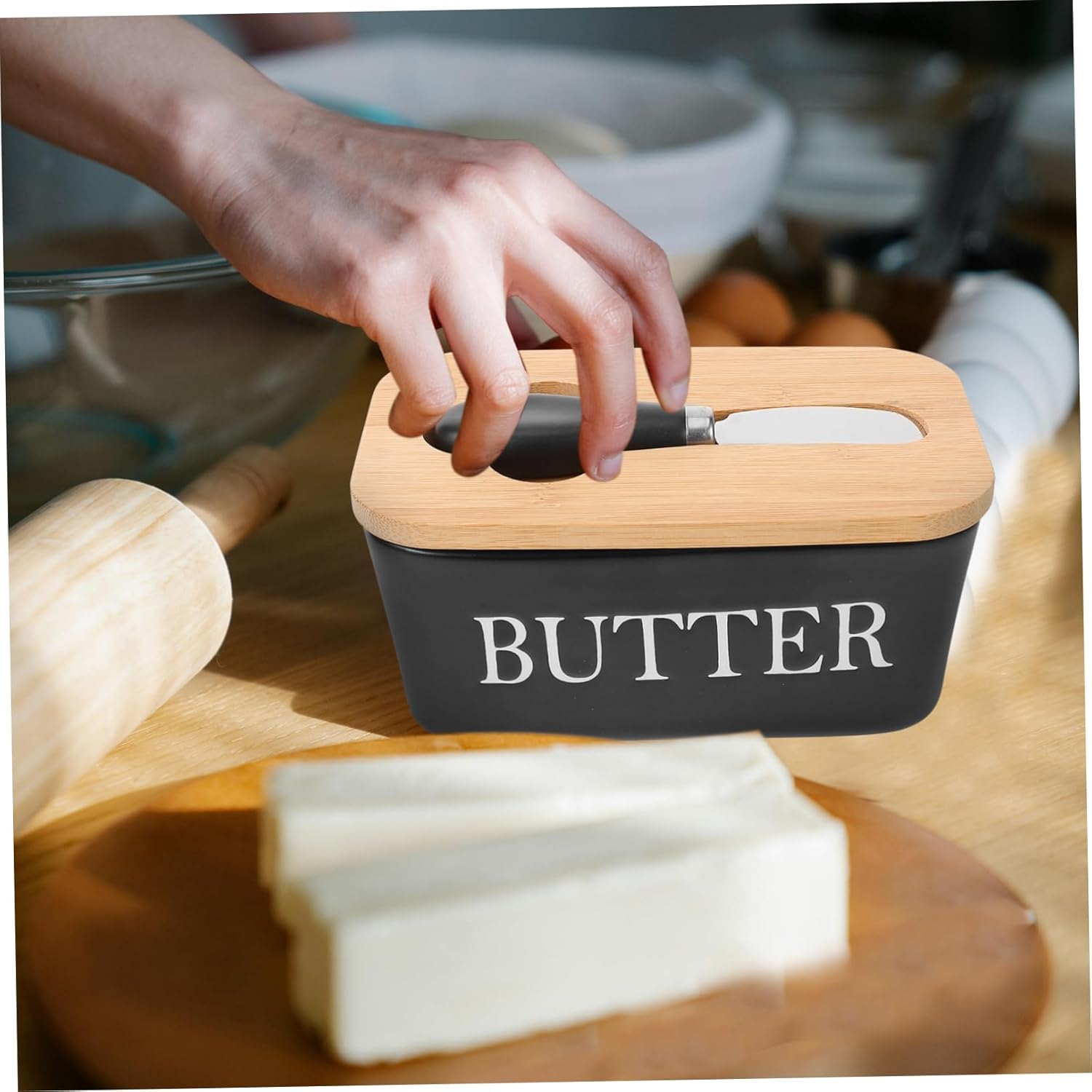 Package List 1 x butter dish 1 x cutter Features -Size:16.50X10.00X7.50cm/6.48X3.93X2.95in(dish) butter container with lid -Color:Assorted Color kitchen butter dish -Size:13.50X2.50X1.50cm/5.31X0.98X0.59in(cutter) ceramic cheese dish with lid -Material:Stainless steel, ceramic, wood home butter box - Safe and convenient to use, not easy to break or deform, reusable and can be applied for longtime butter keeper container. - Proper size, this butter dish is convenient access to your butter right when you need it butter dish with lid. - Elegant design of this dish makes it a addition to any table setting, adding a touch of sophistication to your dining experience butter box. - This butter holder has a smooth surface, and fine details, and it's easy to clean, making your life convenient dish with lid. - This butter dish with lid can be used to store butter, can also be used to store dessert, etc reusable cheese box.Goods Descriptionbutter tray with lid This is a Ceramic Butter Dish with lid made of smooth materials, sturdy and practical for a use.butter keeper container This is a must-have item in your home.butter dish While ensuring a smooth appearance, it also allows you to use it with peace of mind.fridge butter organizer for restaurants, dessert shops, kitchens, for your own use, or as a to a friend