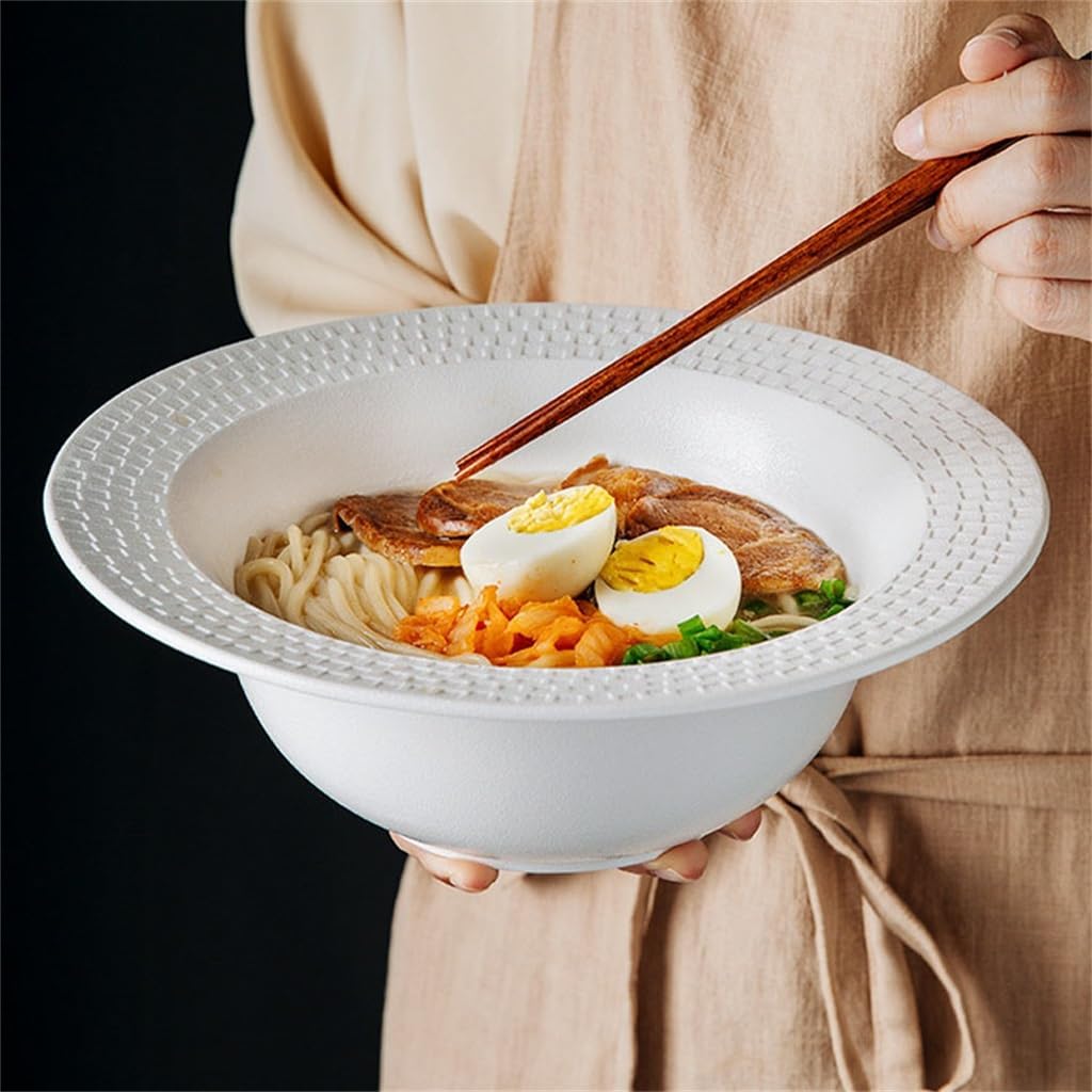 The porcelain is tough and heat resistant without cracking, and can be used in microwave, oven and other appliances.The surface has a sculpted texture with a soft sheen that makes your food look more delicious.Made of ceramic, not hot to hold on the end, the bowl bottom raised design, hold steady and not easy to slip your hand.The glazed surface is glossy and can be cleaned with light water for a beautiful display in your cabinet.This soup bowl can hold salads, vegetables, fruits, mixed dressings and your favorite foods.Material: porcelain.Shape: round.Size: 22.5*8CM.Package content: 1*soup bowl (other display items are not included).1 Color may differ slightly from the image due to differences in light and screen.2. Due to the manual measurement, please allow a 1-3 cm difference.Whether it's a comfortable family breakfast or a lively gathering with friends, our fashionable cutlery collection can enhance your dining experience in any occasion
