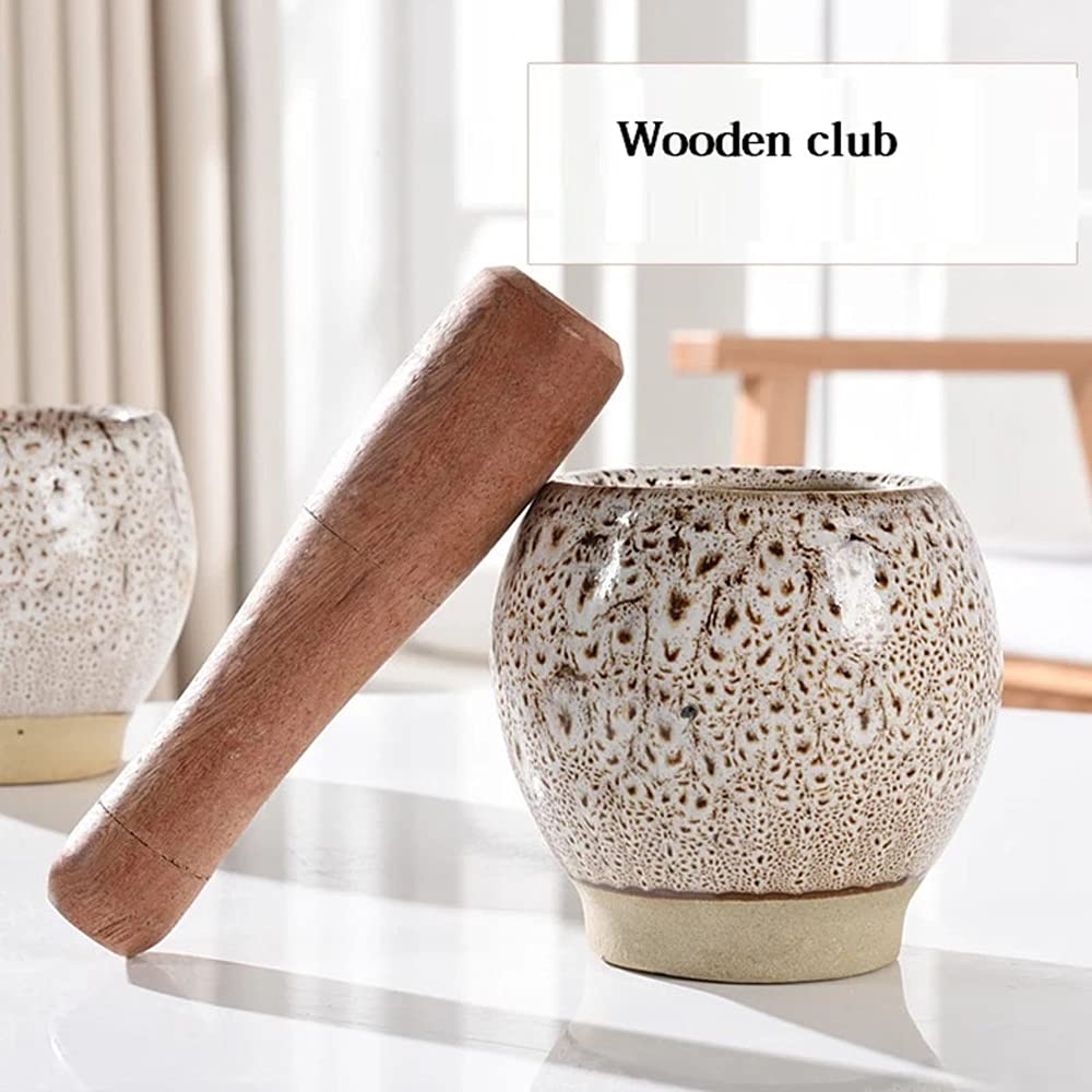 Product advantages:: Mortar Pestle set is made of ceramic and wood ,thickened design solid and .Beautiful: Classical、smooth and neat appearance with pattern.Retro design go back to primitive life .Easy to use:Simple design and easy .Multi-purpose: It is almost versatile in kitchen and can be used as mill、grinder and crusher to crushing Pepper/Garlic/chili/baby food .Good for : It can keep the original flavour of the food furthest , and easy to clean.:Mortar Pestle setProduct size:Mortar 10*10.5cm(Diameter*height)Pestle 17cm LengthMain material:Ceramic+woodPacking list:Mortar Pestle *1set.Only the above package content, other products are not included.Note: Light shooting and different displays may cause the color of the item in the picture a little different from the real thing. The measurement allowed error is +/- 1-3cm.Manual grinding is labor-saving and efficient, with a stable structure that is not easy to slip during use; easy to clean and store, a compact and practical kitchen gadget that meets daily seasoning and cooking needs