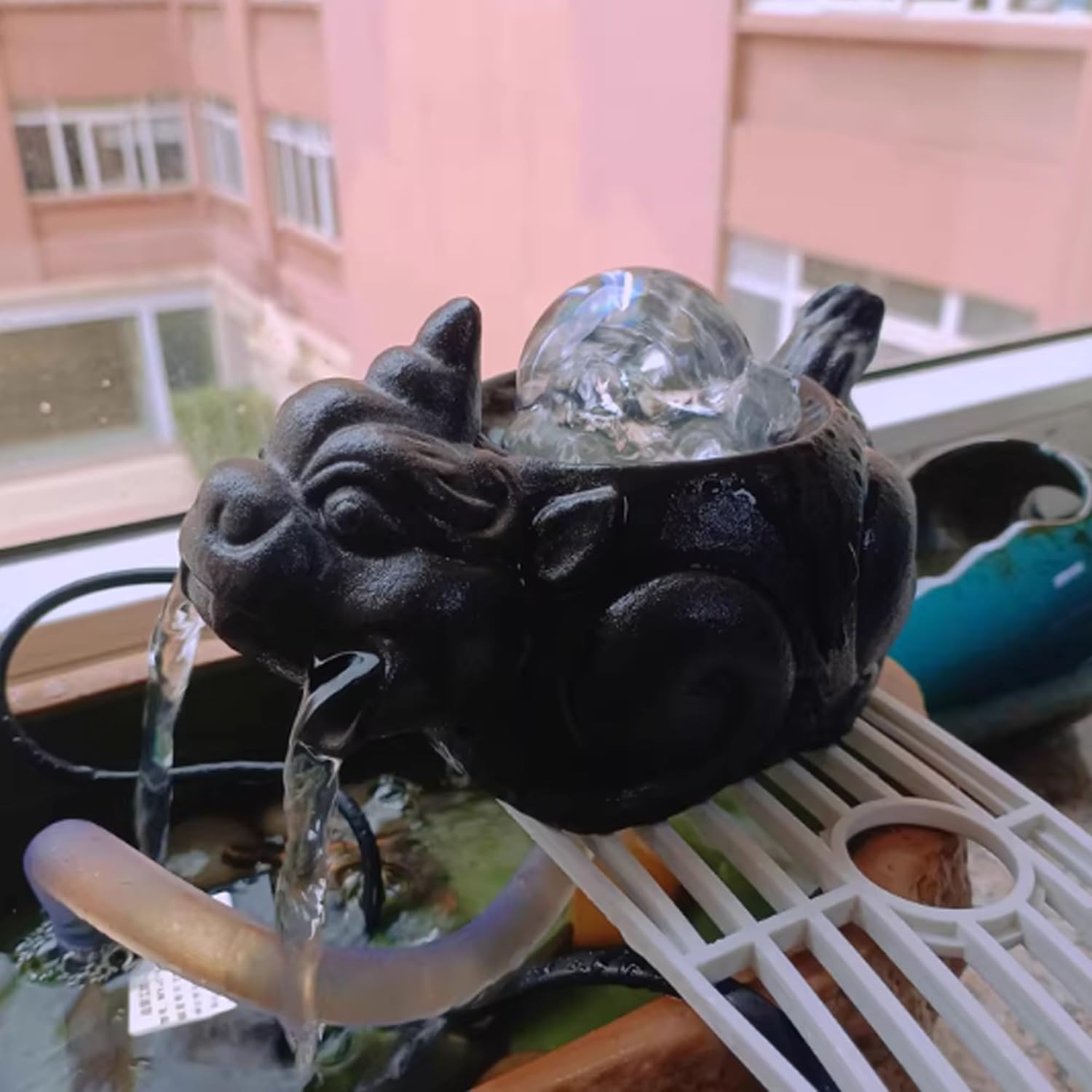 Bring harmony, beauty, and meaning to your outdoor space with this Pixiu Ceramic Pond Spitter Fountain. Inspired by the mythical Pixiu—an auspicious creature in Chinese culture symbolizing wealth, protection, and good fortune—this fountain is both a captivating water feature and a cultural statement piece.Crafted from weather-resistant, fade-proof ceramic, Pond Spitter Fountain for small ponds withstands sun, rain, and seasonal changes, ensuring its beauty lasts all year long. The graceful water flow creates a relaxing sound while the smoothly rotating glass ball adds a mesmerizing visual touch.Perfect for koi ponds, patios, courtyards, lawns, balconies, and other landscapes, this fountain enhances your space with movement, charm, and symbolic significance. It also makes a thoughtful and unique gift for garden enthusiasts or anyone who appreciates Eastern artistry.Transform your outdoor area into a serene retreat and let the Pixiu bring prosperity and peace to your home.