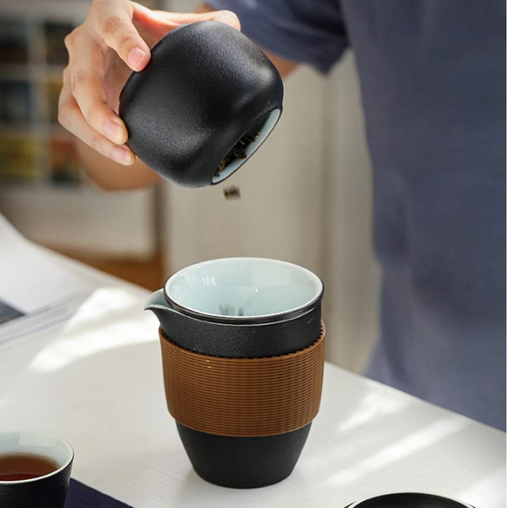 Quantity: A pot of four cups + tea cans + carrying caseMaterial: Ceramic.Small space, fully equipped and freely stowed to bring you a portable tea drinking experience.The tea can is put into the tea pot, and the portable mini tea can is easy to carry.The teapot has a built-in filter, lifts the lid gently, and puts it upside down, which is simple and easy.With a suitable width design and a comfortable grip, making tea has become a simple matter.There is a layer of transparent glaze on the inside of the cup, the tea soup is better and the opening is designed, the tea is easy to drink, and the lips are not burnt.Note: 1.Light and monitor setting may cause slight color difference.2.Please allow slight deviation as all dimensions are measured manually. The image is only for reference.