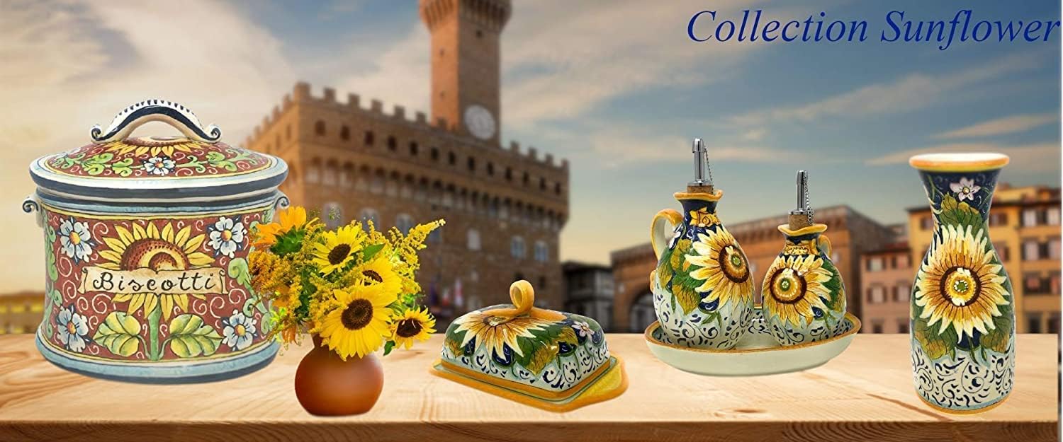 THE TOTAL PRICE INCLUDES CUSTOMS DUTY TAX PRODUCT INFORMATIONCeramic small bowl for any use .Decoration: Collection sunflower ; sunflowers , leaves, flowers and curls, on a blue background, orange/yellow borderDimensions: 7,87 inch x 7,87 inch x 2.75 inch hPRODUCT INSTRUCTIONSAll our products are lead-free and can be used for foods . Dishwasher safe Do not use in microwave Do not use in oven
