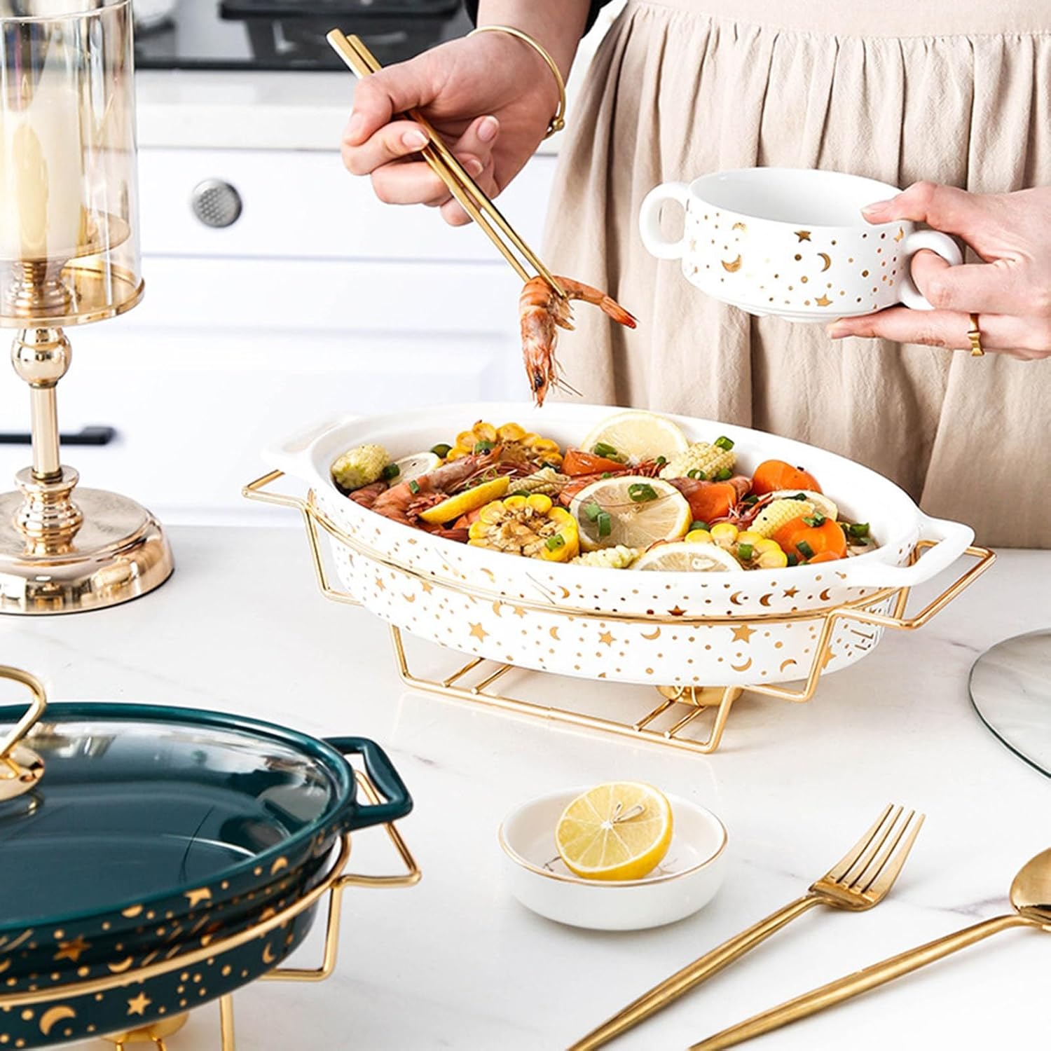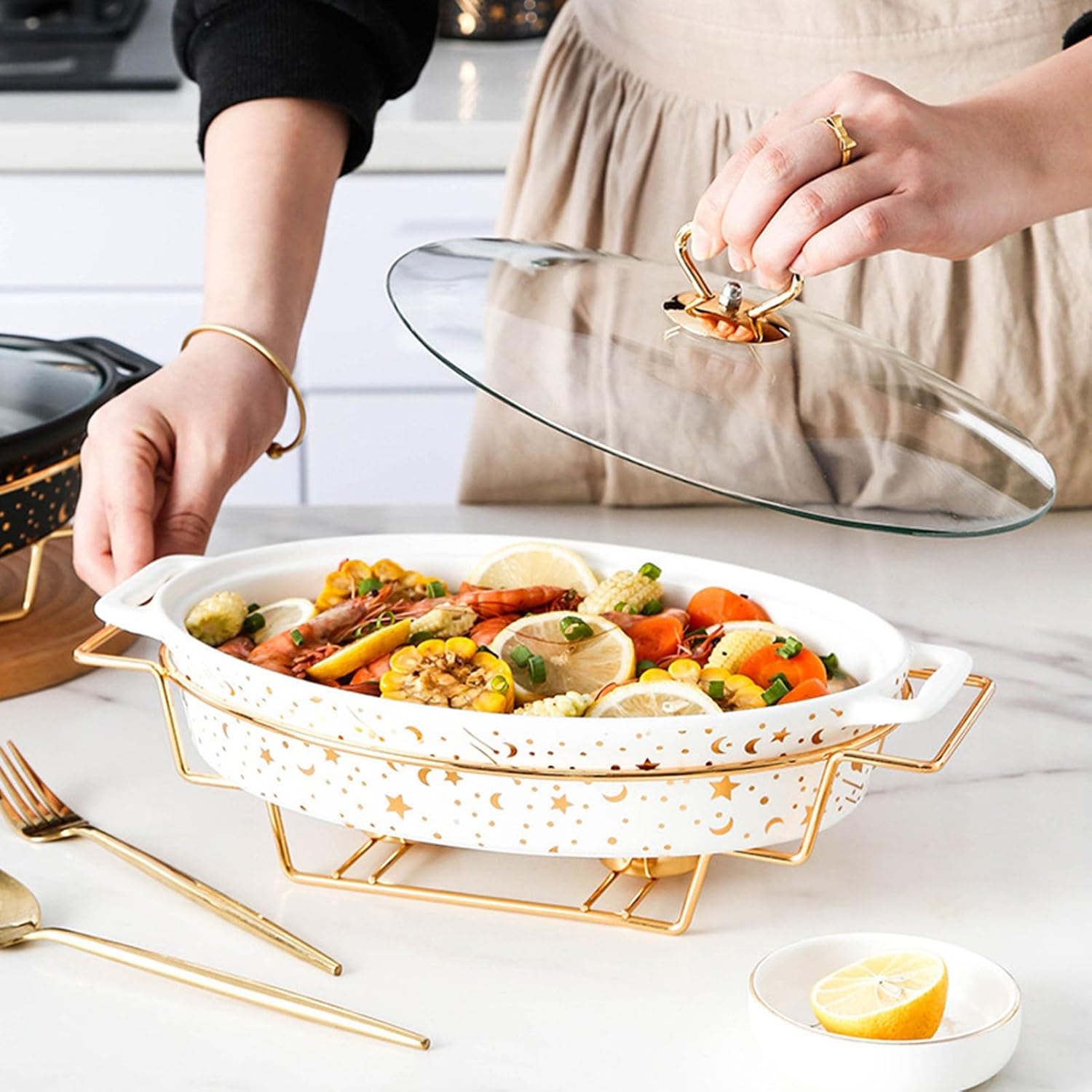 Description The item is a large capacity buffet furnace for heating. Adoption of premium material, sturdy and durable for long-term use. It's a convenient and elegant way to serve gatherings, events, buffets, hotel breakfast areas, brunches, catering, parties, wedding banquets, etc. Package Including 1 x Buffet Stove Note: If anyone has any questions, please contact us in time, we will solve it for you within 24 s