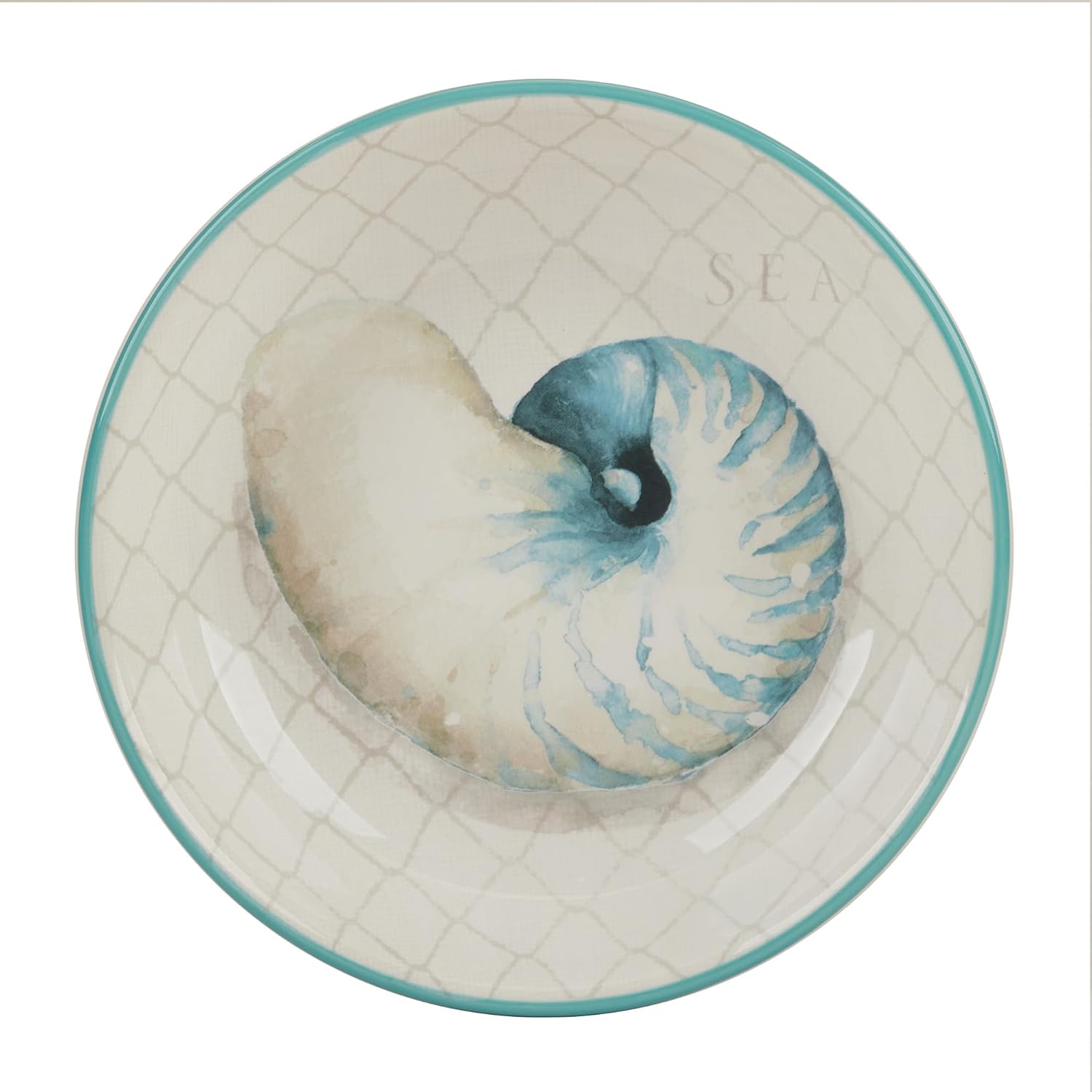 Heighten your dining experience with Certified International’s “Ocean View” Set of 4 Soup Bowls, each a vessel of coastal serenity designed by the acclaimed Lisa Audit. These ceramic bowls, 9 inches in diameter and 2 inches high, are perfect canvases for the sea's natural artistry, with each one featuring a different seashell set upon a cream fishing net backdrop. Ideal for casual dining, they effortlessly hold soup, salad, or a complete one-dish meal, making them a versatile staple in any kitchen. The high-fired earthenware with a glossy finish offers both elegance and endurance, easily transitioning from a quiet family dinner to a lively gathering around the table. Complete the ensemble with a matching 13-inch Serving Bowl and other pieces from the collection, including unique silver-plated Silver Coast 3-D Shells, to fully embrace the coastal aesthetic in your home.