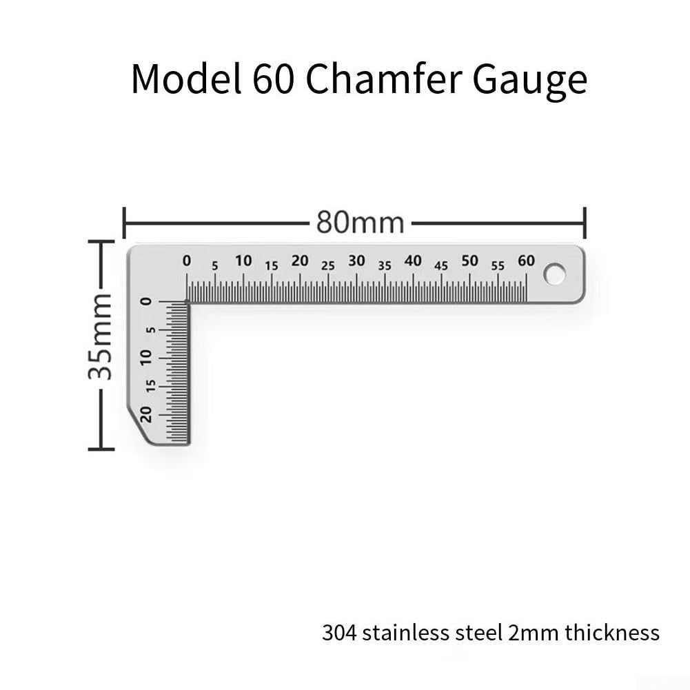 Features:Accurately measure inside and outside angles with this gauge made of corrosion-resistant material.The clear, easy-to-read display makes this tool suitable for a variety of measuring tasks.It's for ideal for engineers, carpenters, DIY enthusiasts, and anyone who needs a precise measuring tool.Versatile for home renovations, workshops, and craft projects requiring accurate measurements.This gauge is a reliable tool for glass processing and mechanical manufacturing, accuracy for every task.Specifications:Part Name: Stainless Steel Chamfer GaugeColor: SilverMaterial: MetalSize: As shownLength: Approximately 65 mm / 2.56 inchesPackage Contents:1 x Chamfer Caliper