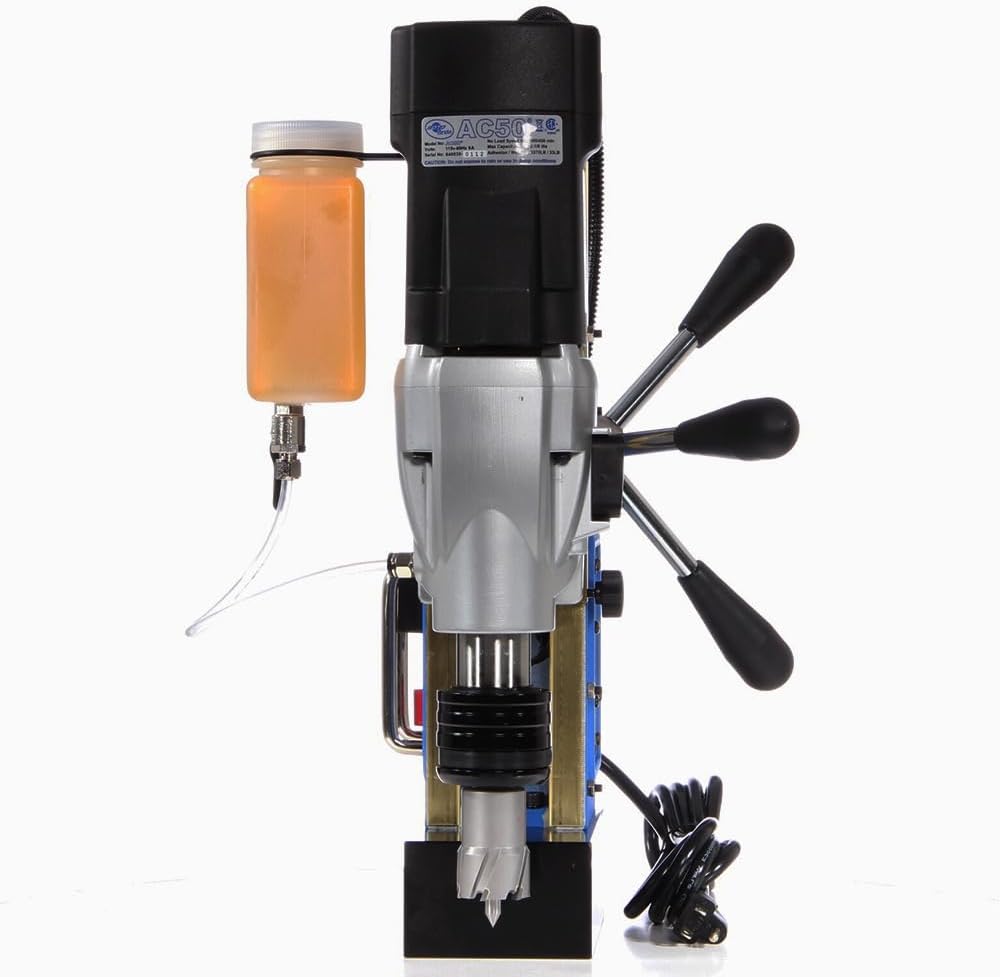 Product Description Champion Cutting Tool's RotoBrute AC50 is a powerful, lightweight magnetic drill press for drilling holes up to 2-1/8" diameter and up to 2" depth. It is easy to maneuver and the quick change arbor allows annular cutters to be changed in seconds. The QX1234 drill/chuck adaptor easily converts from annular cutters to twist drills, which is included with this model. The AC35 is ideal for the steel fabrication and construction industry, truck/trailer frame fabrication, plant maintenance, refineries, power generation, mining, bridge work, and ship building industries. From the Manufacturer AC50 Magnetic Drill Press RotoBrute by Champion Cutting Tool Corp., Annular Cutter Capacity 2-1/8" diameter x 2" depth,