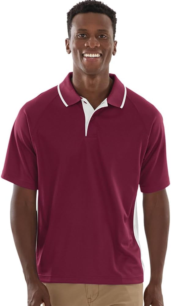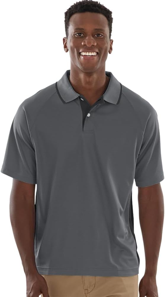 The Men's Classic Wicking Polo is made of 100% polyester pique knit with TopShield moisture management treatment. This hi-tech treatment applied to the fabric wicks moisture away from your body, leaving you feeling comfortable and dry. Solid body and rib knit collar accented with white tipping. Taped neckline for clean, finished appearance. Placket with dyed-to-match buttons.